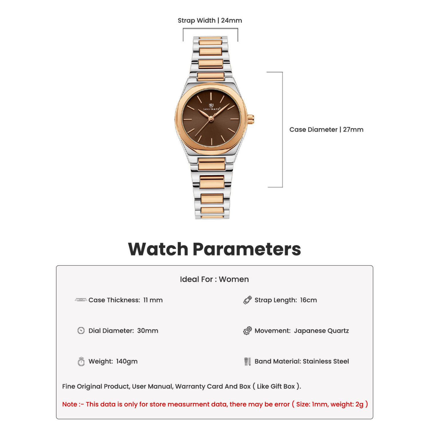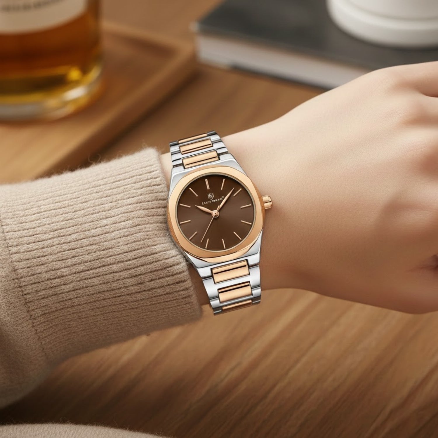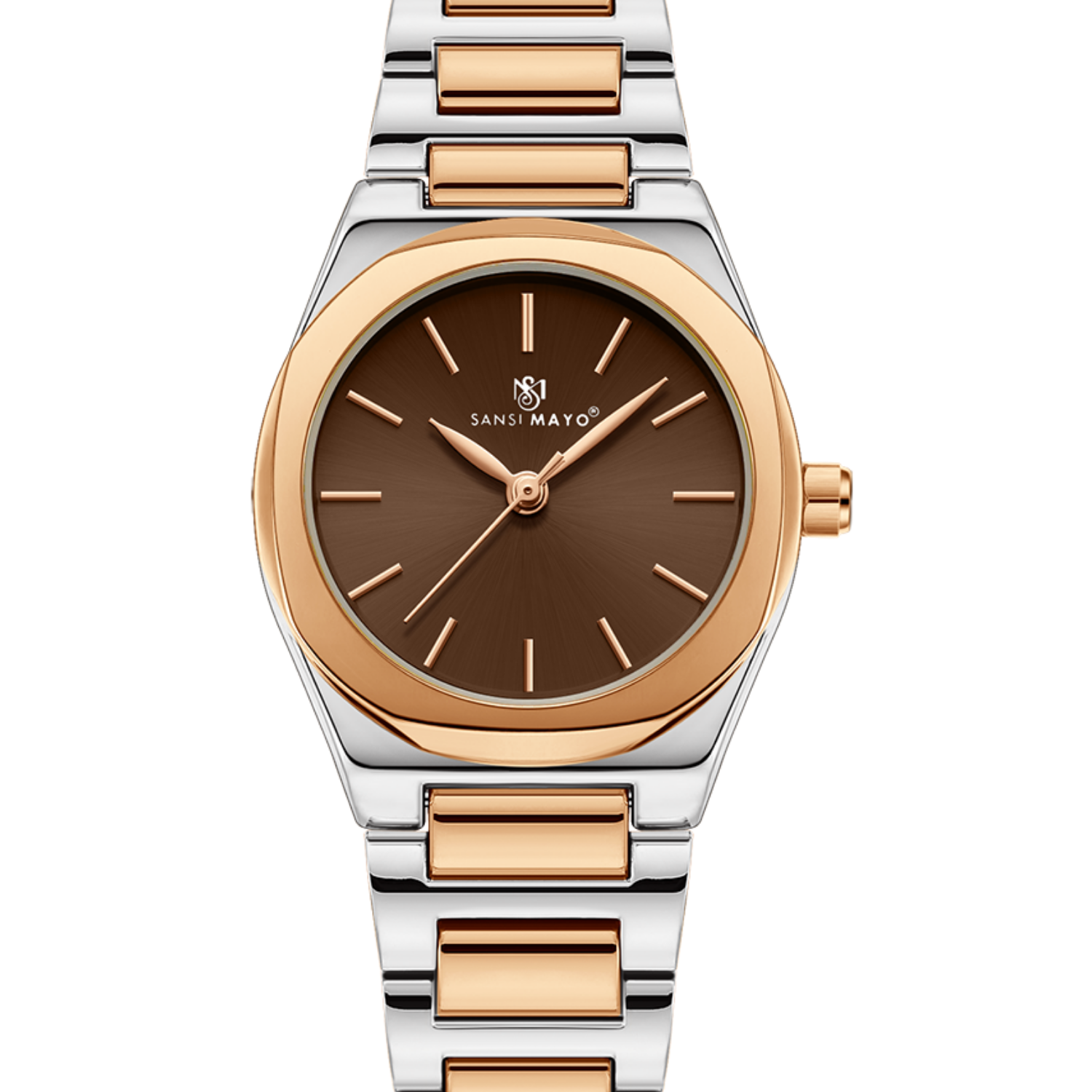 Sansi Mayo Women's Round Brown & Rose Gold Watch – Warm Elegance in Two-Tone Design