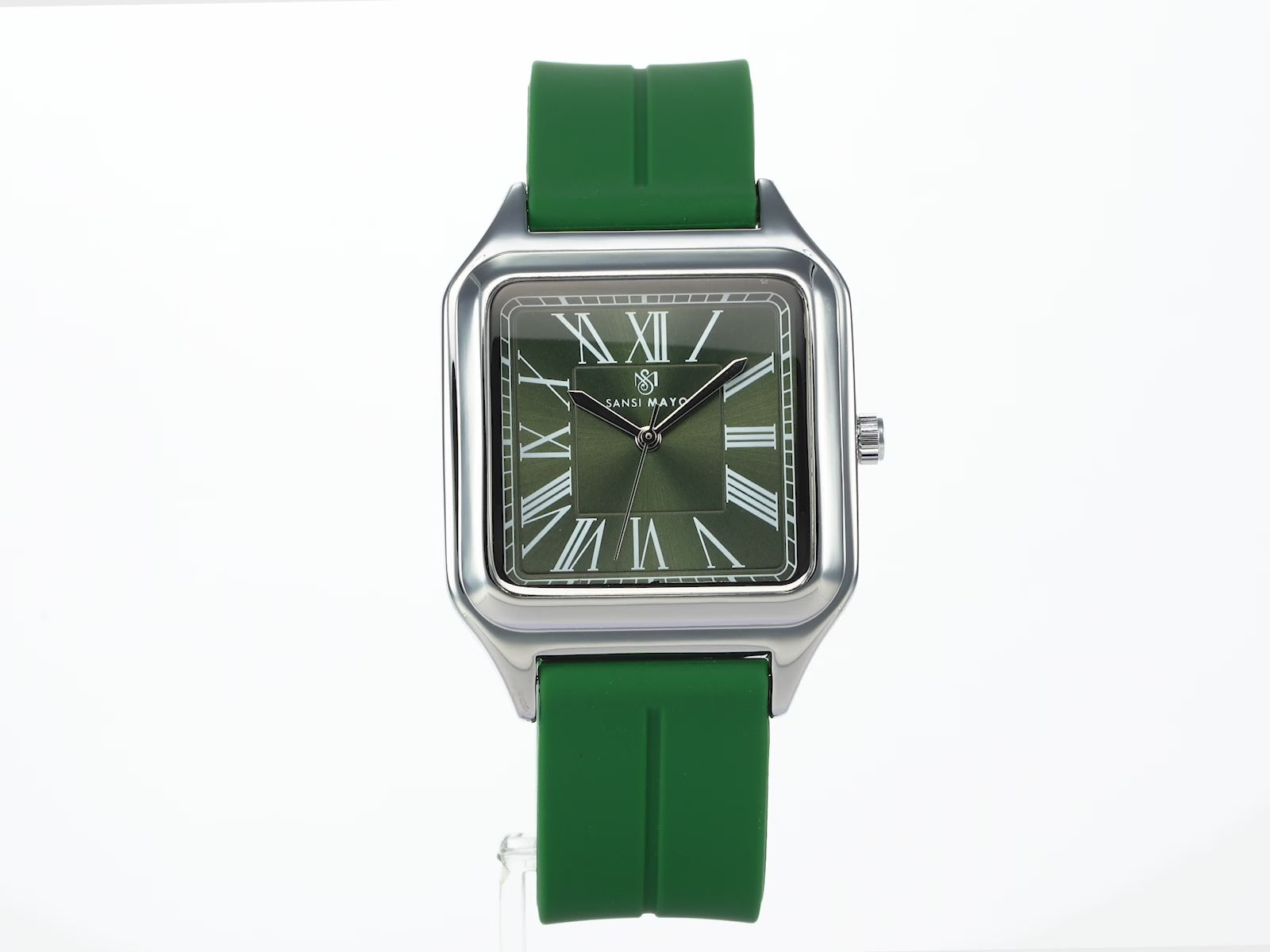 Embrace a natural and stylish look the SANSI MAYO men's green on green silicone watch. The earthy green tones of the strap and matching dial create a cohesive and eye-catching design. The square case adds a touch of modern flair. Powered by a precise quartz movement for accurate timekeeping and backed by a 1-year warranty.