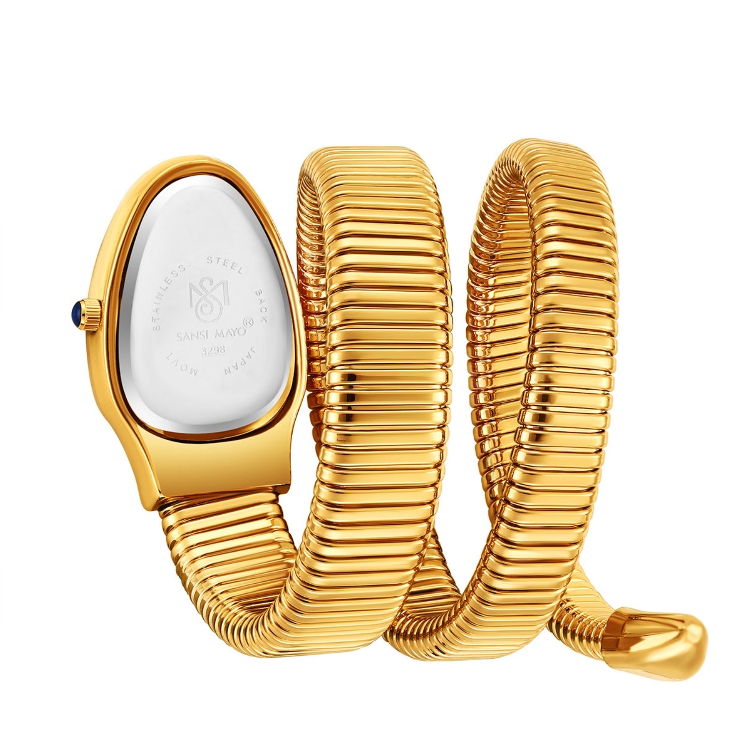The Sansi Mayo Cobra Watch brings together classic elegance and contemporary flair. Featuring a polished gold stainless steel case and bracelet, paired with a striking black dial, this watch is designed for those who demand sophistication with reliability.