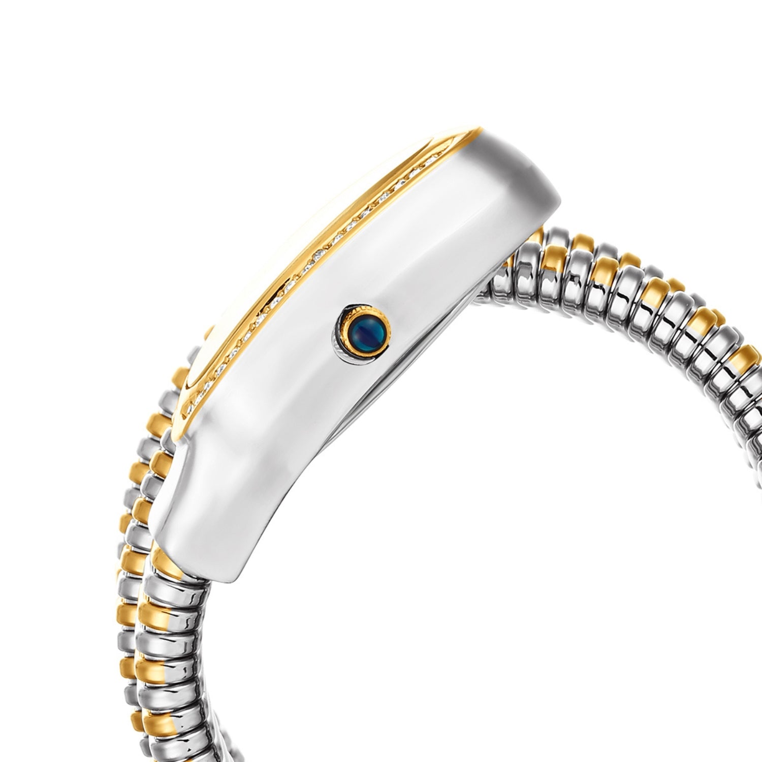 The Sansi Mayo Cobra Watch in Two Tone Silver Gold combines contemporary aesthetics with classic watchmaking. Featuring a polished two-tone silver and gold stainless steel case and strap with a pristine white dial, this timepiece exudes sophistication for all occasions.
