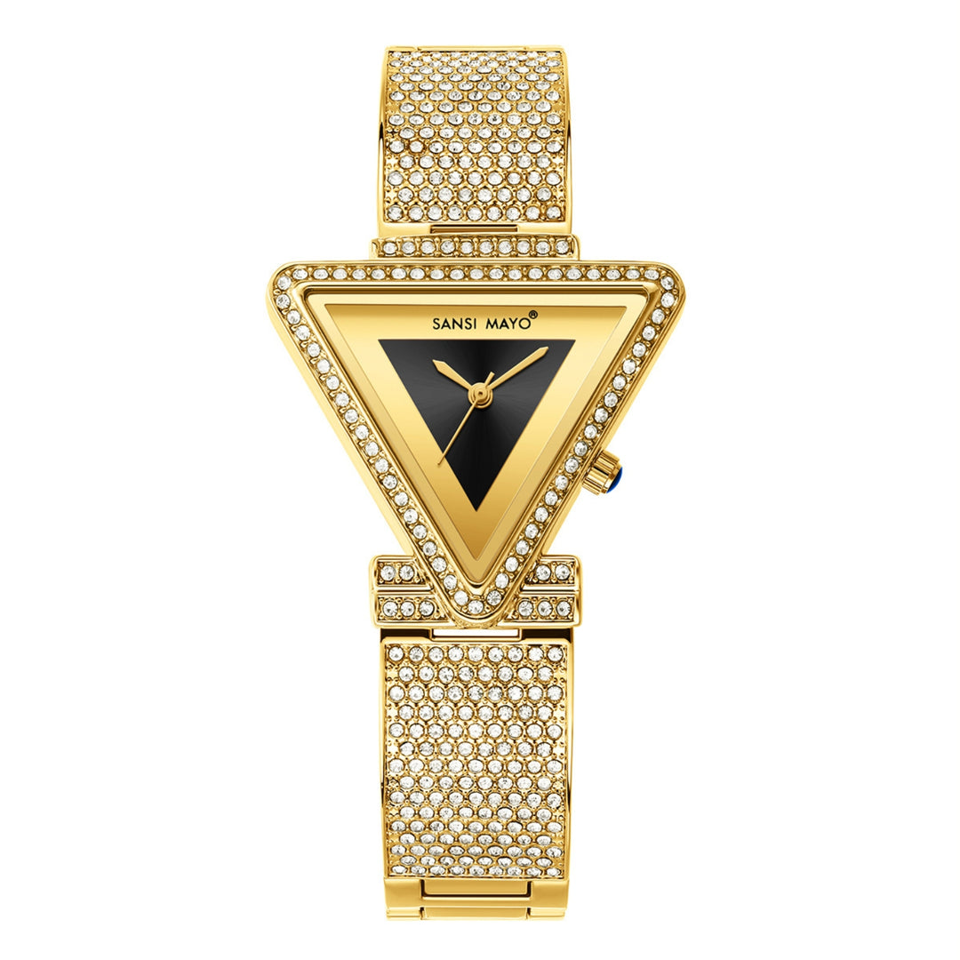 Dina Black Dial Studded Triangle Watch for Women