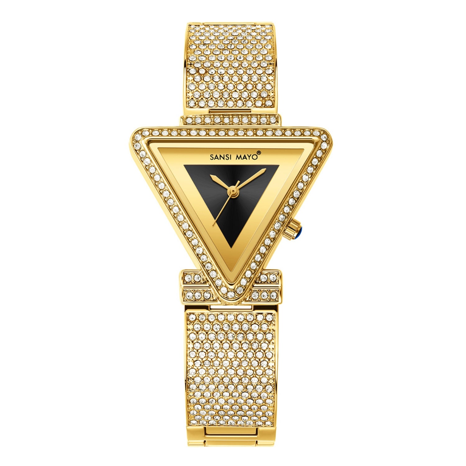 Step into confident style with the Sansi Mayo Dina Black Triangle Edition. Designed for women who prefer strong contrasts and refined silhouettes, this timepiece features a striking black triangle-shaped dial paired with a gold studded stainless steel bracelet. Powered by a precise Japanese quartz movement, it blends modern fashion with everyday reliability.