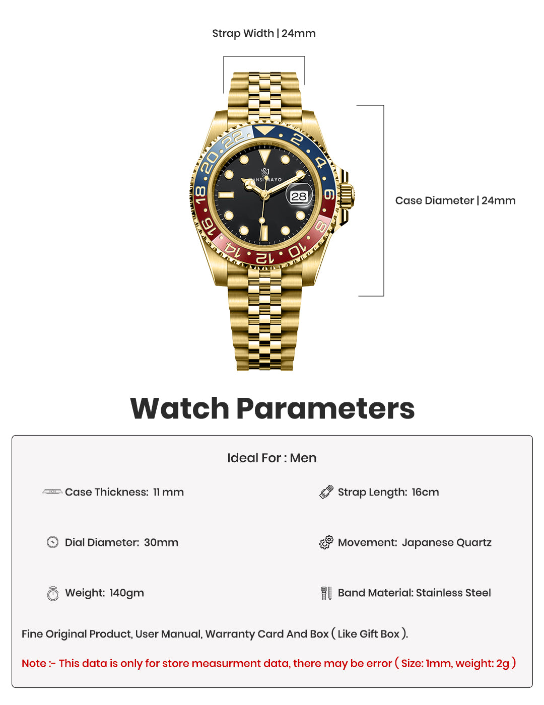 Turn heads with the Sansi Mayo men's analog watch featuring a striking black dial and gold-toned stainless steel band. This bold yet elegant timepiece delivers timeless appeal, powered by precision Japanese Quartz movement and built to accompany you from boardroom meetings to weekend dinners.