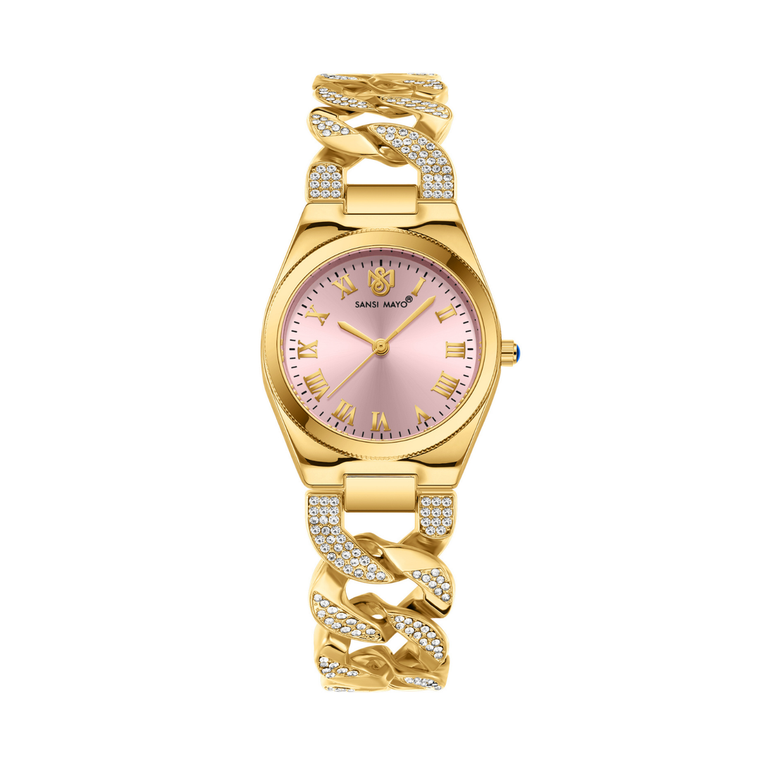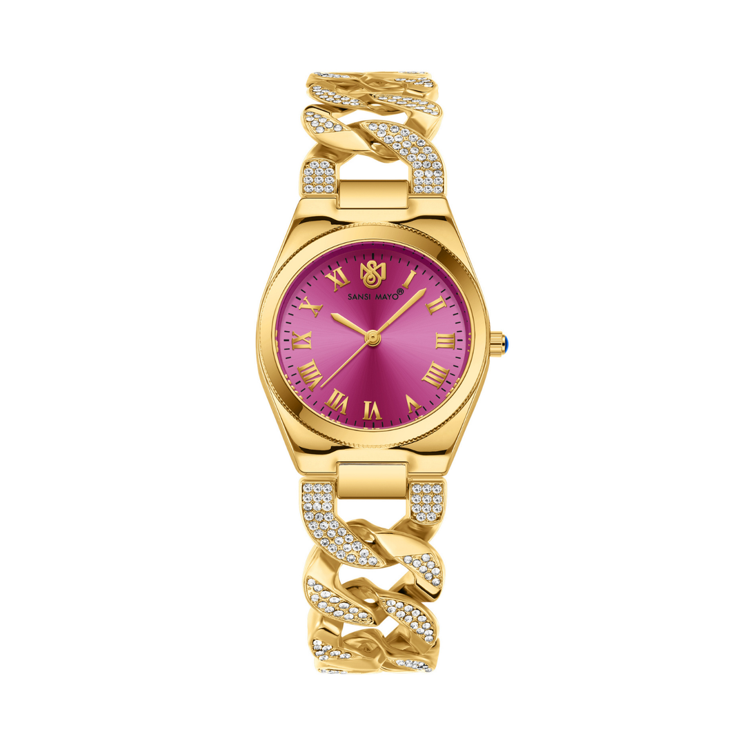Sansi Mayo Elora Egyptian Stone — Dark Pink Dial, Gold Bracelet Edition