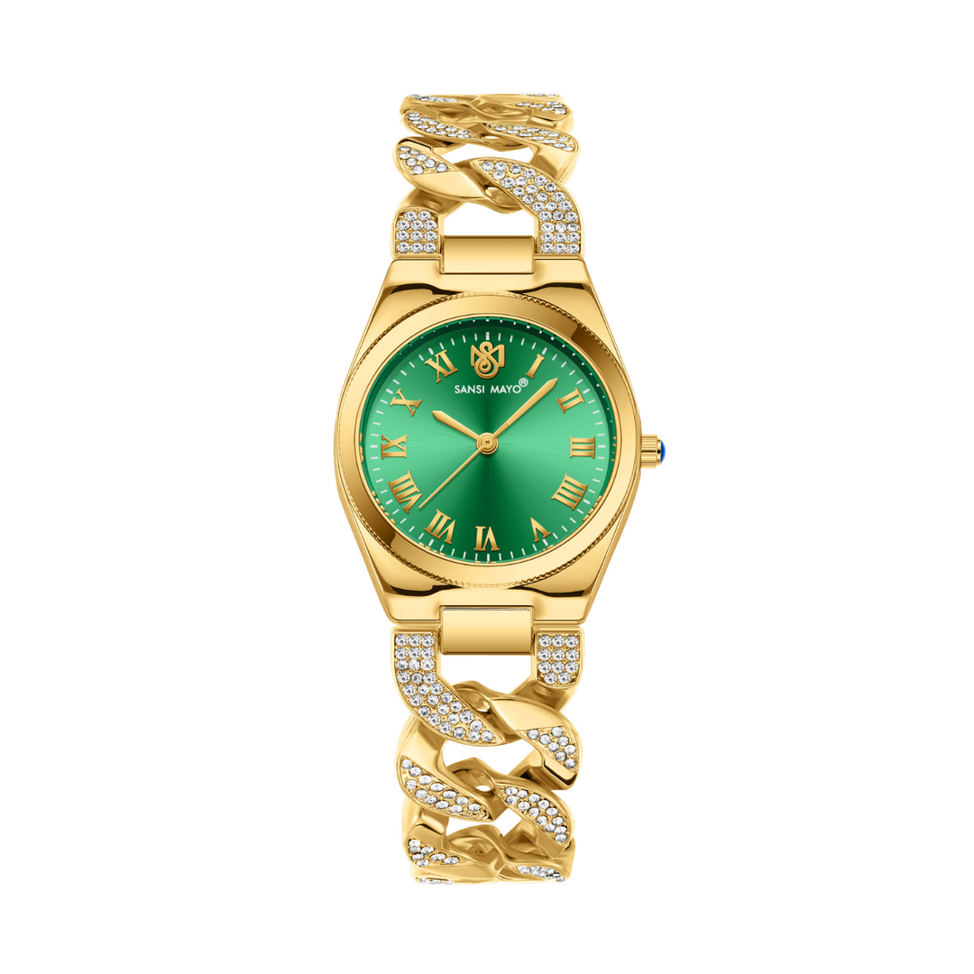 Sansi Mayo Elora Green Dial Gold Bracelet Watch — Egyptian Stone Collection