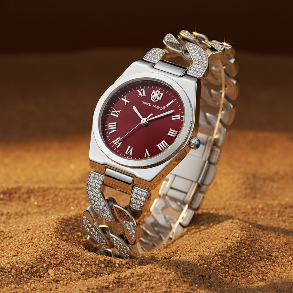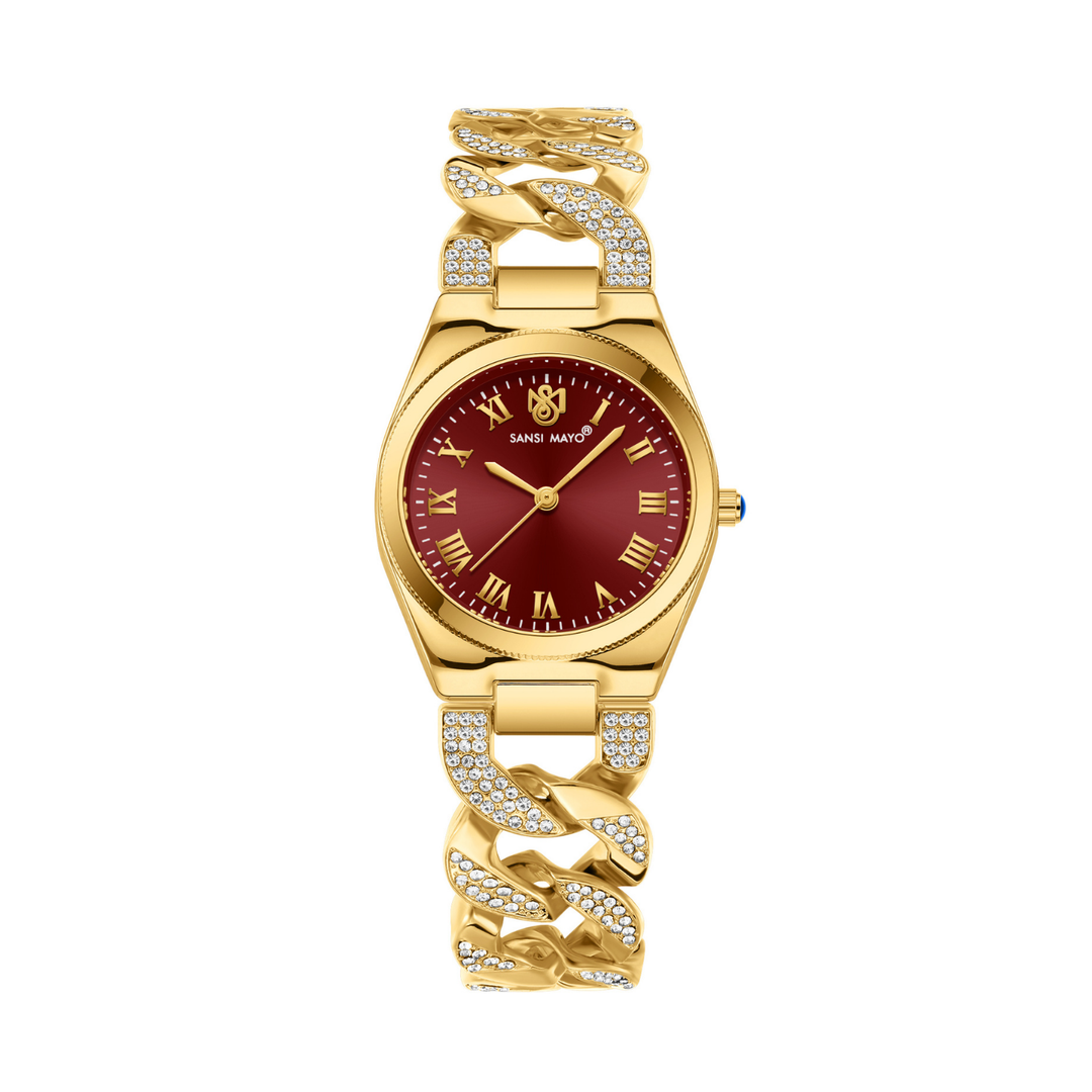 Sansi Mayo Elora Egyptian Stone — Maroon Dial, Gold Bracelet Edition