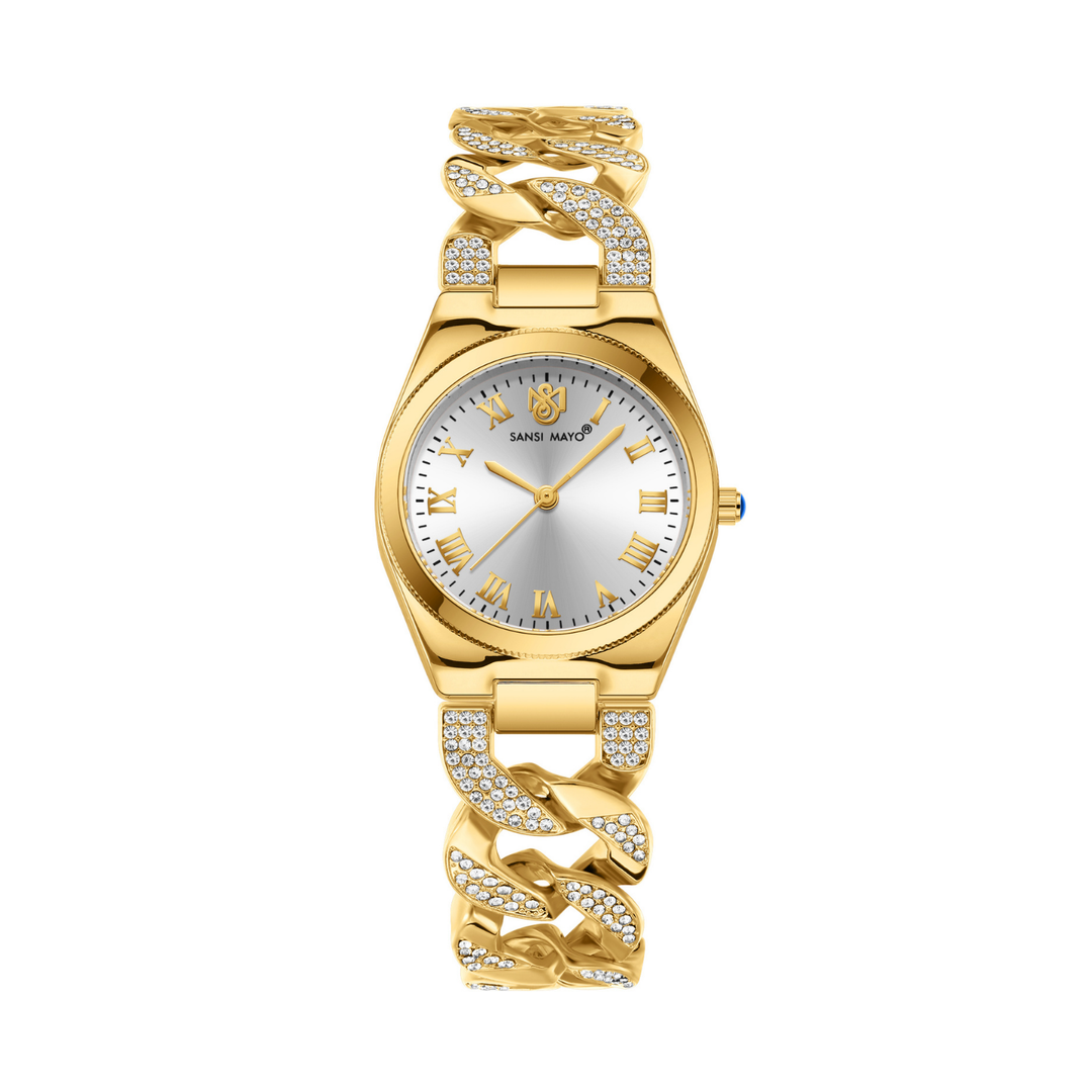 Sansi Mayo ELORA Egyptian Stone Watch — Gold Dial, Gold Bracelet Style