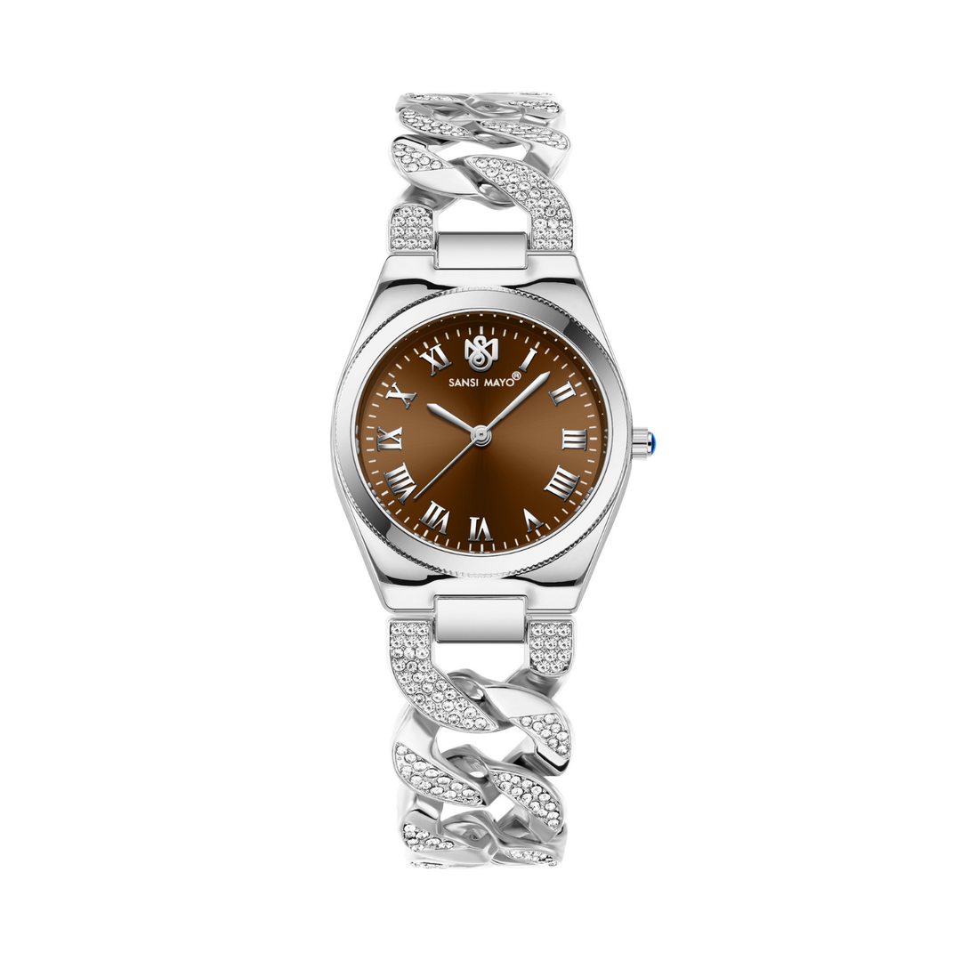 Sansi Mayo ELORA Egyptian Stone Watch — Silver Bracelet with Brown Dial