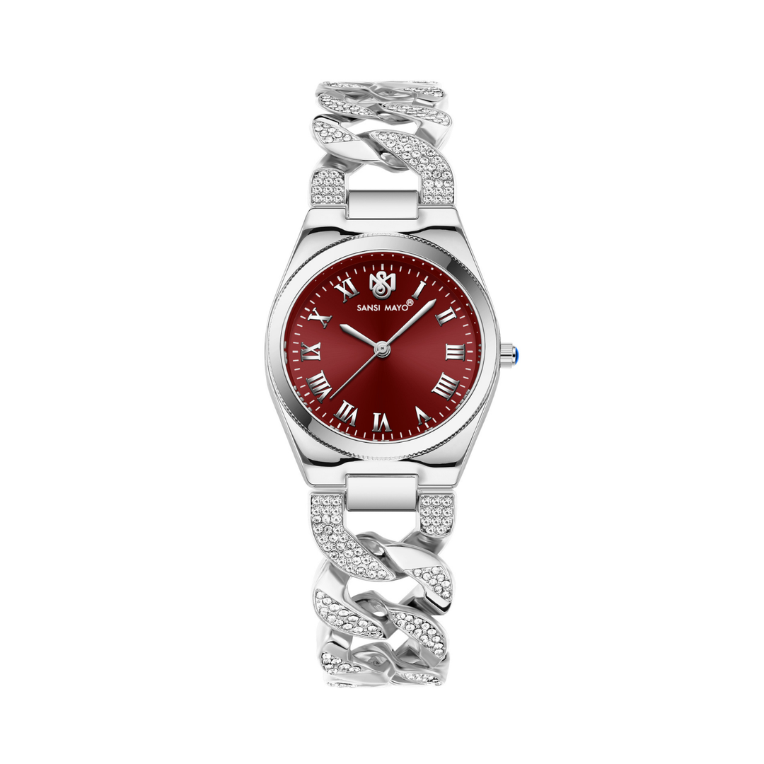Sansi Mayo ELORA Egyptian Stone Watch — Silver Bracelet with Maroon Dial
