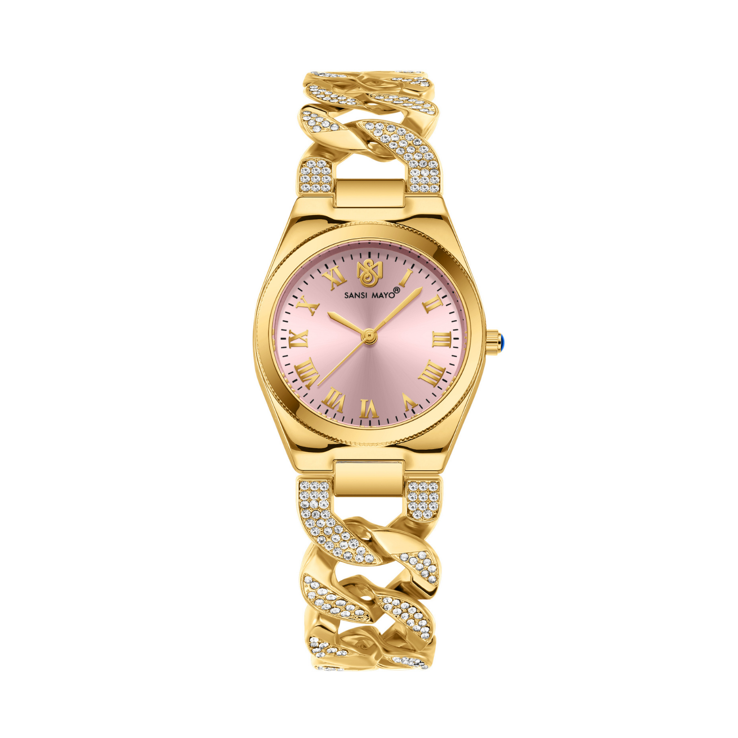 Sansi Mayo ELORA Egyptian Stone Bracelet Style Watch — Light Pink Dial, Gold Edition