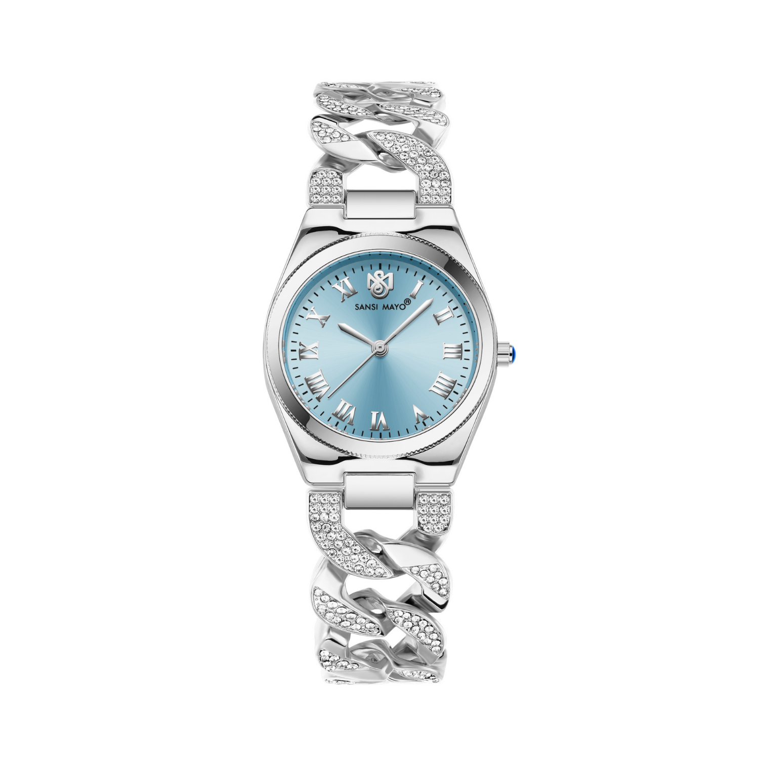 Sansi Mayo ELORA Egyptian Stone Watch — Sky Blue Dial & Silver Bracelet