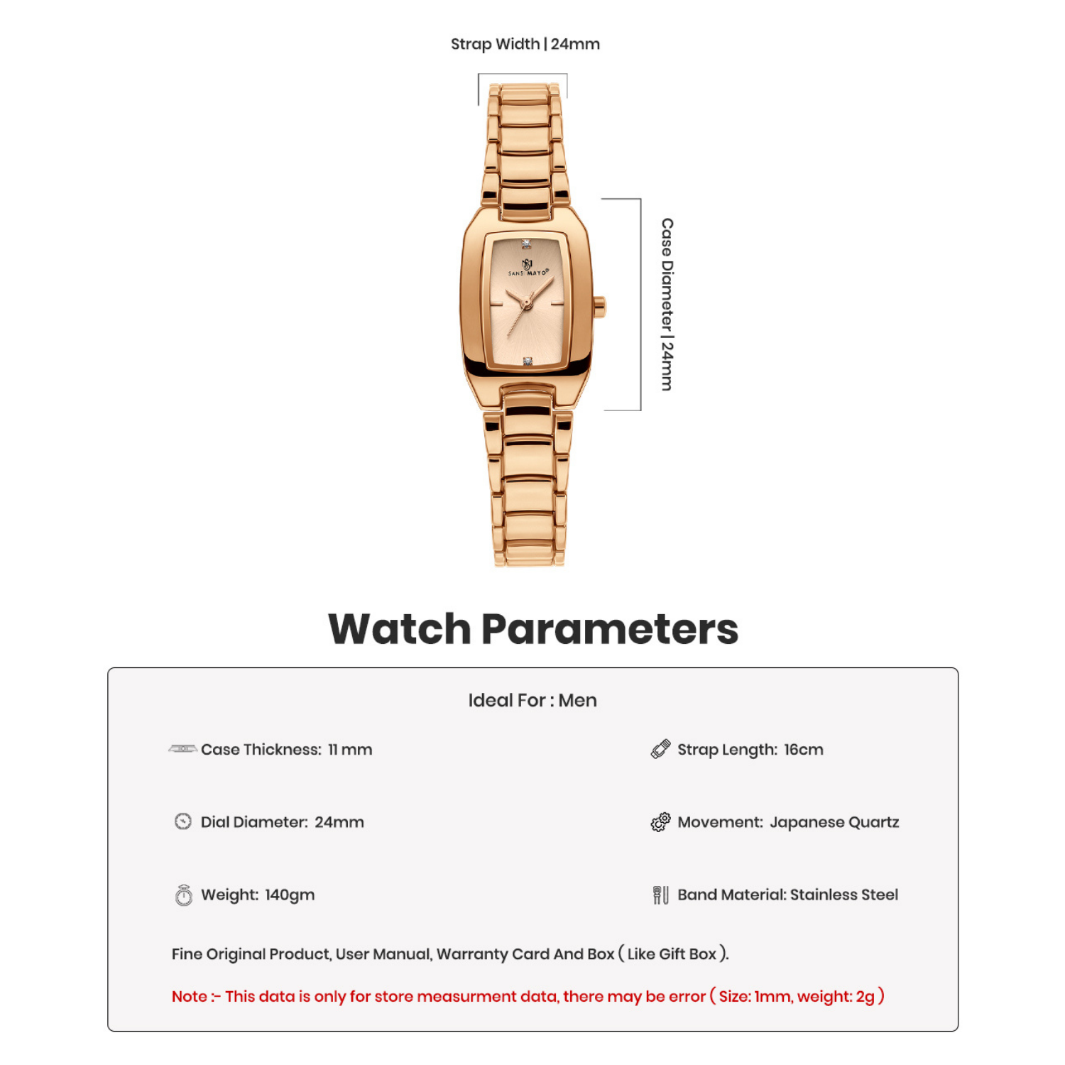 Grace your wrist with the Sansi Mayo Women's Square Rose Gold Wrist Watch. Featuring a stunning rose gold dial paired with a matching rose gold stainless steel band, this square-shaped timepiece exudes refined elegance and modern charm.