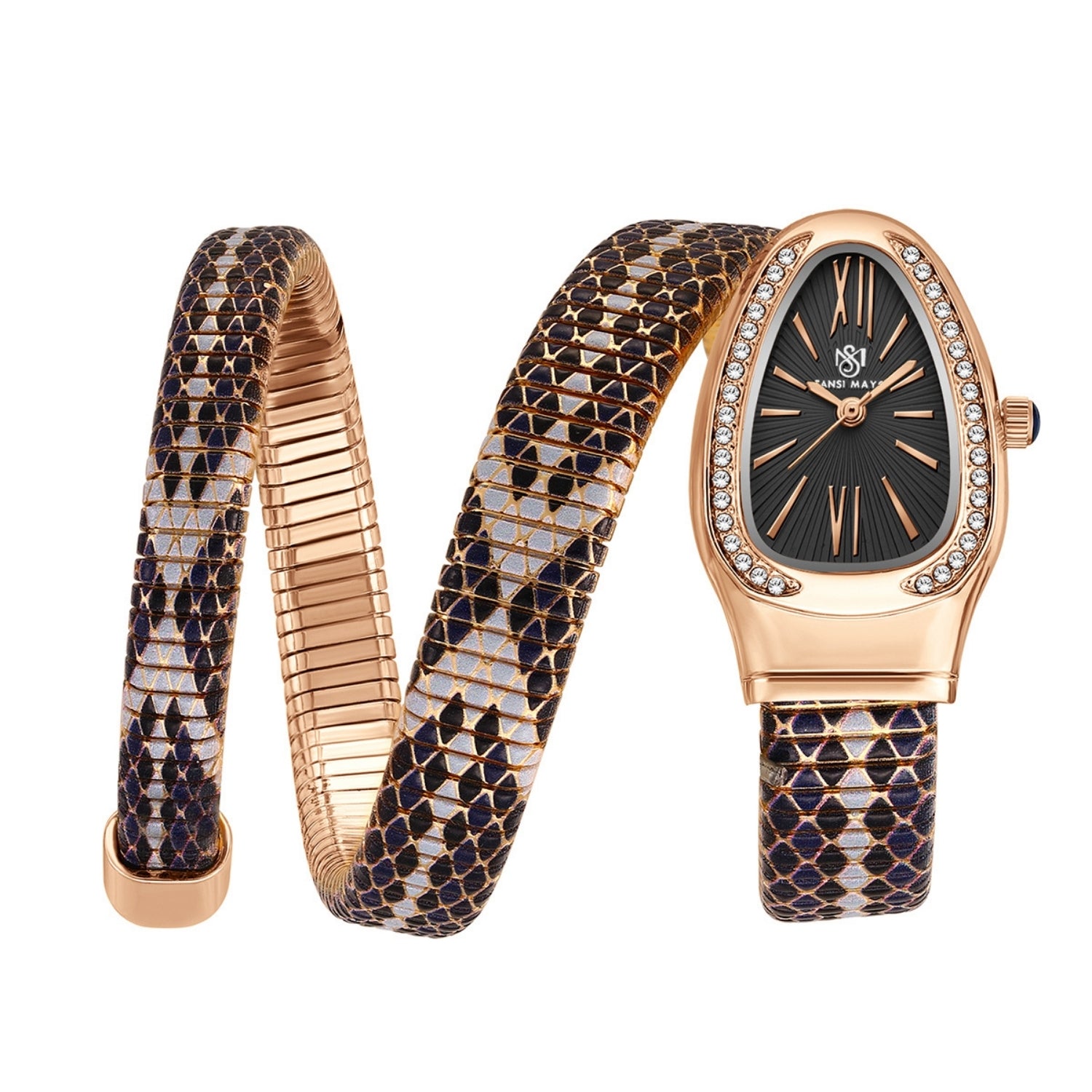 Sansi Mayo Koil Snake Watch — Rose Gold & Black Edition
