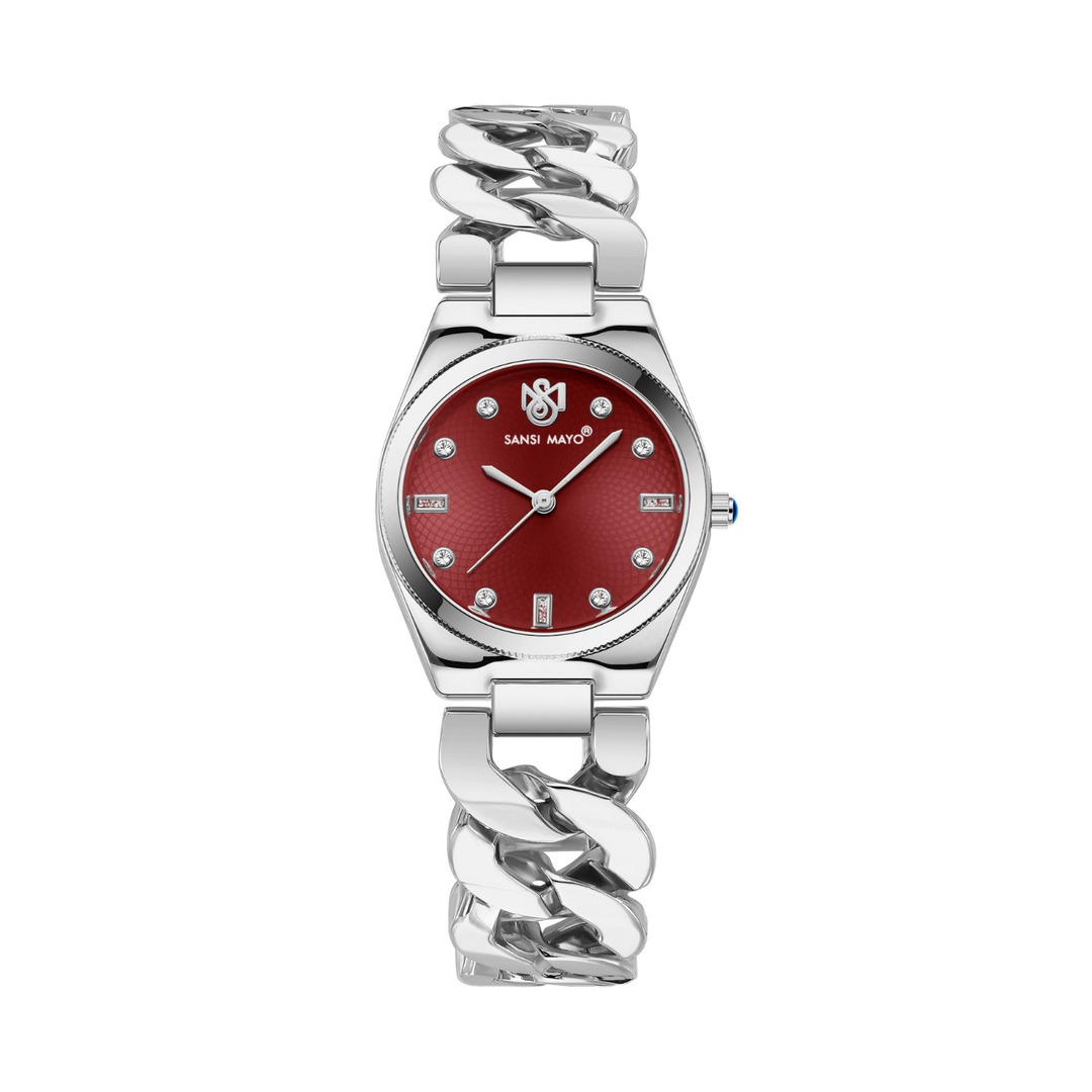 Sansi Mayo LIORA Bracelet Style Watch — Maroon Dial, Silver Edition