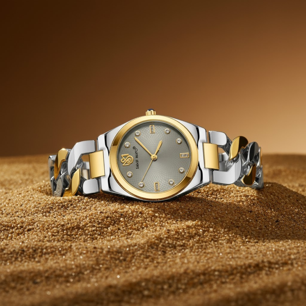 Sansi Mayo LIORA Bracelet Style Watch — Two-Tone Silver & Gold (White Dial)