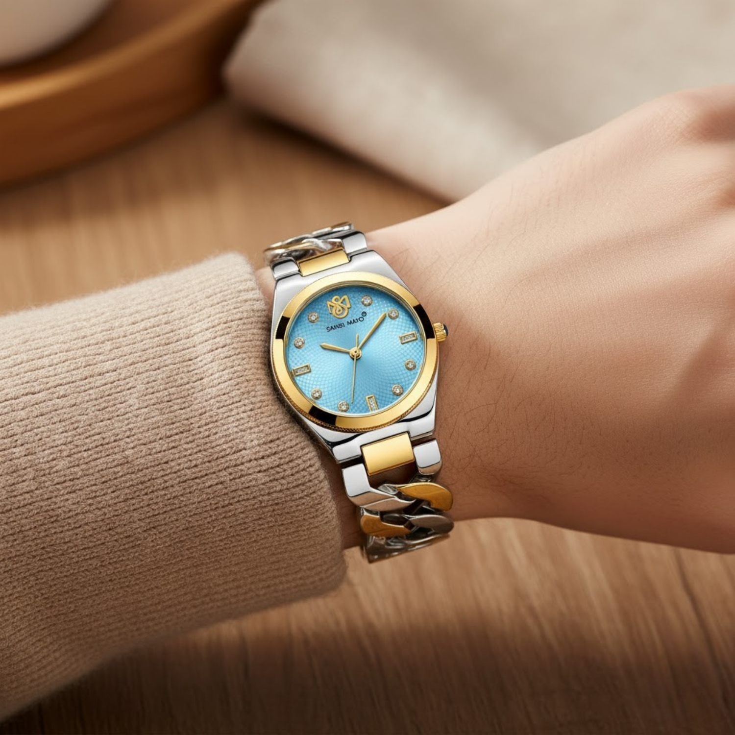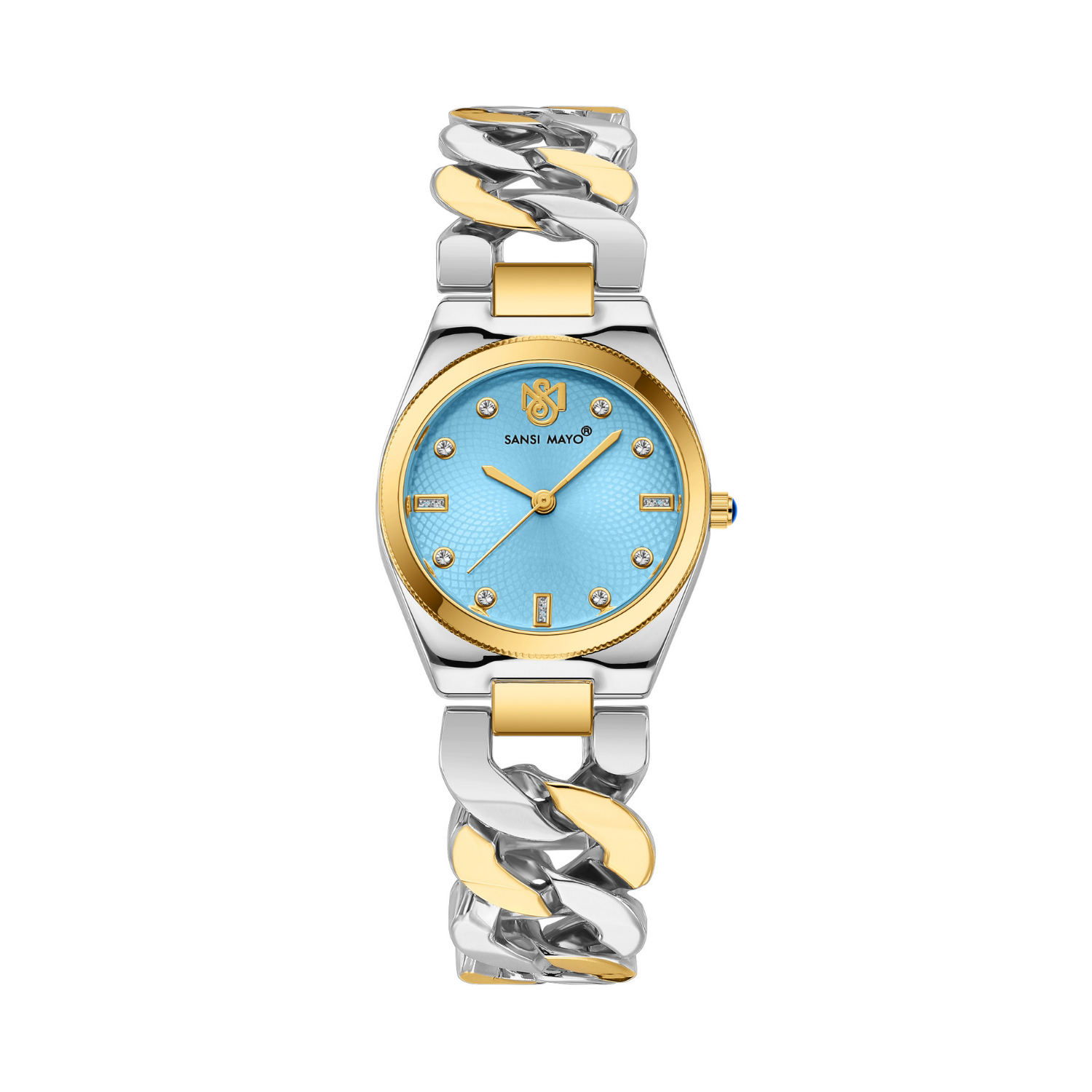 Sansi Mayo LIORA Bracelet Style Watch — Two-Tone Silver & Gold (Sky Blue Dial)