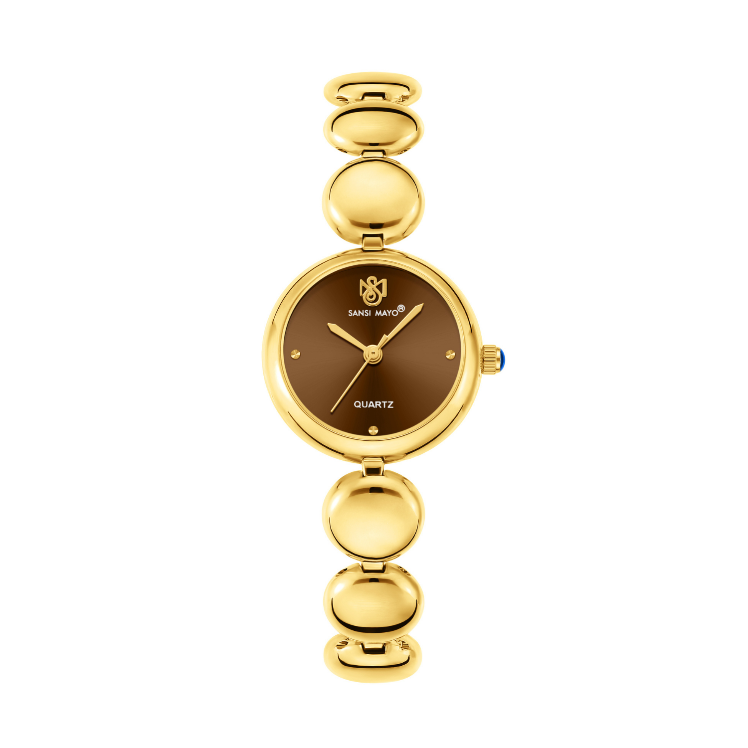The Sansi Mayo LYANA Brown Gold Edition is a sophisticated women’s timepiece designed to elevate your everyday style. Featuring a deep brown dial, a polished gold stainless steel bracelet, and IP 30 plating, this watch combines elegance with durability. Powered by reliable Japanese Quartz movement, it ensures precise timekeeping while exuding modern luxury.