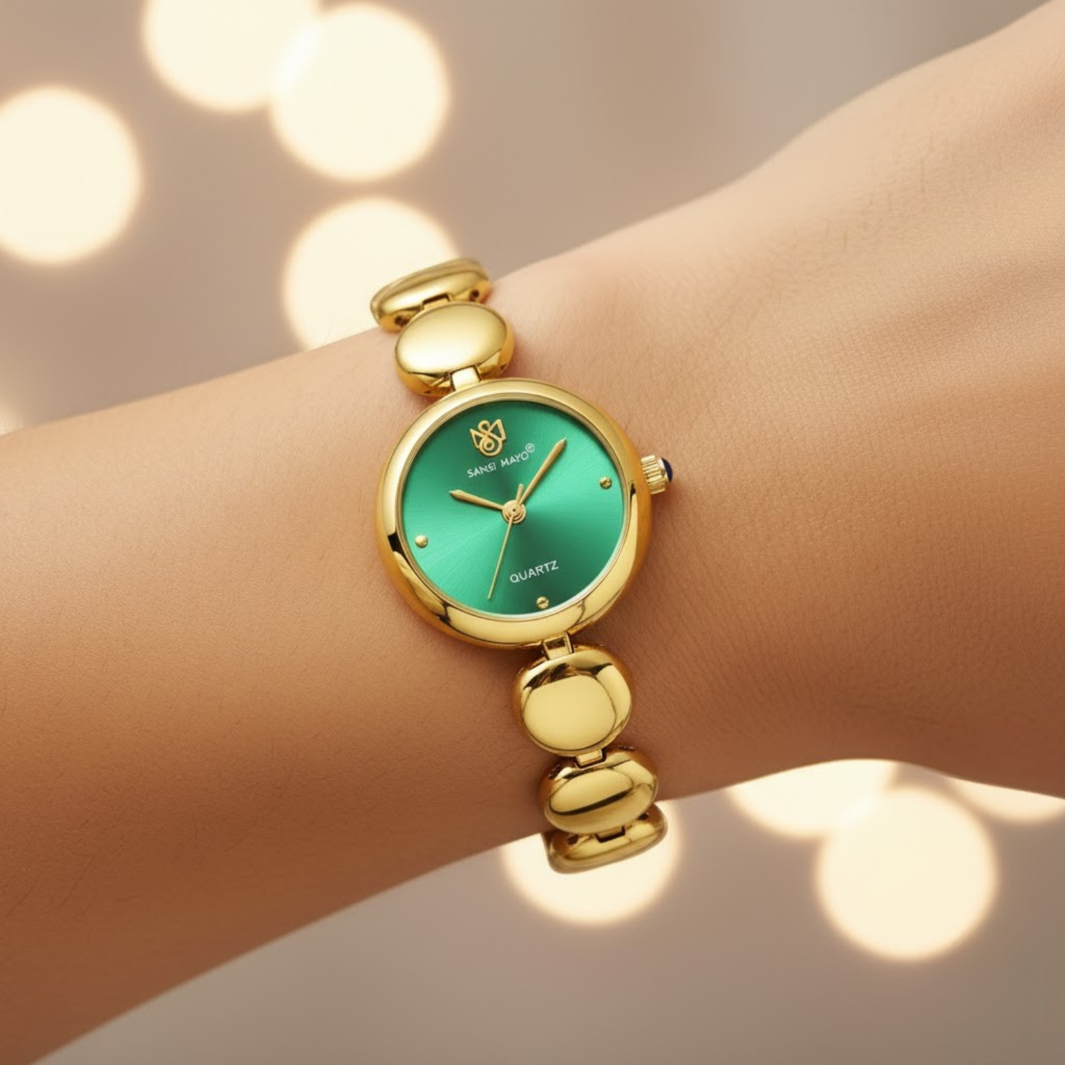 The Sansi Mayo LYANA Green Gold Edition is crafted for women who embrace style with confidence. Featuring a vibrant green dial set in a gold stainless steel case, this timepiece blends modern charm with timeless sophistication. Powered by reliable Japanese Quartz movement, it offers precision and grace in every moment.