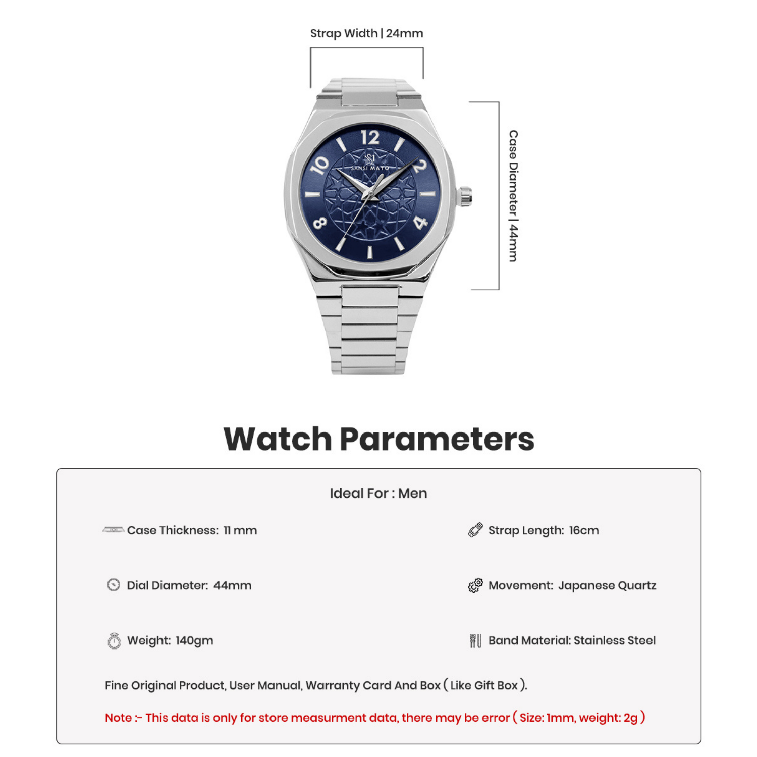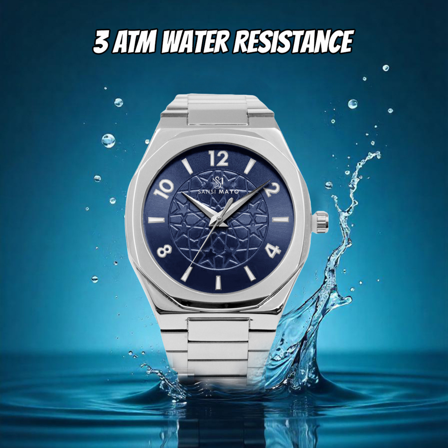 Experience refined elegance with the Sansi Mayo Silver & Blue Harmony Wrist Watch. Featuring a round alloy case with polished IPS plating, a striking blue dial, and a sleek steel band, this watch exudes a classic yet contemporary style. Equipped with accurate Japan movement and battery, and offering 3 ATM water resistance, it combines sophisticated design with dependable functionality.