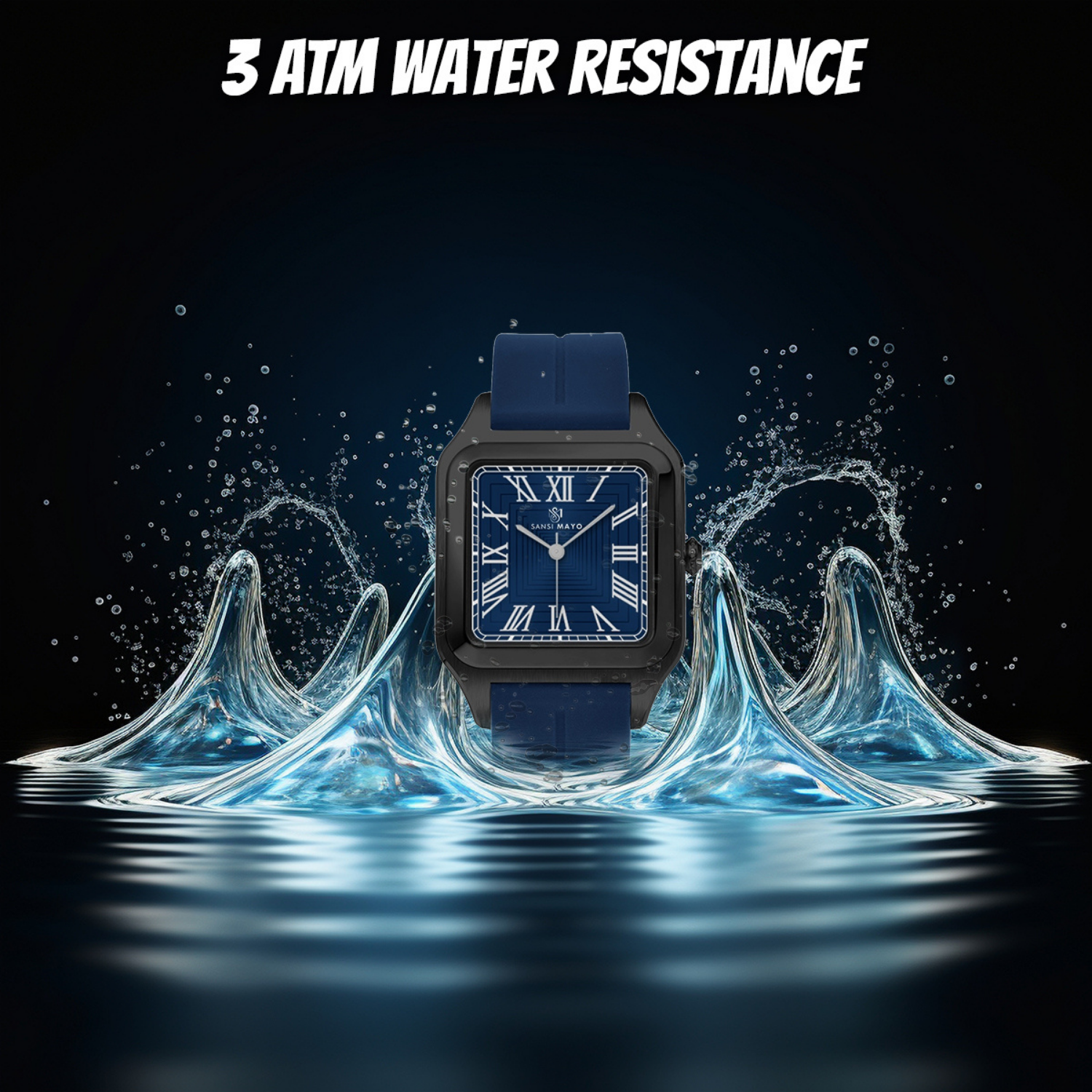 Sansi Mayo Men's Blue on Blue Silicone Watch - Sporty Style in a Square Case V2
