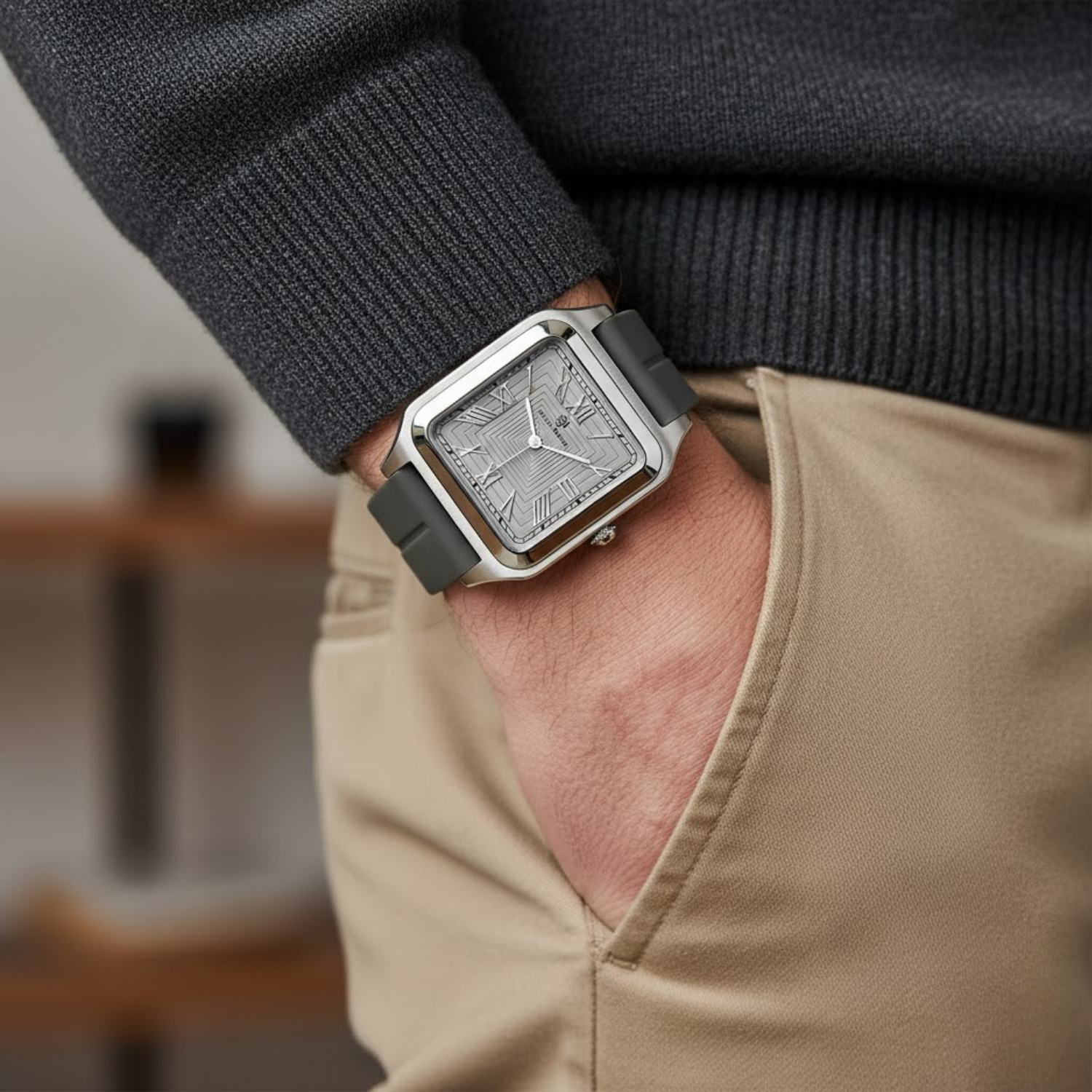 Sansi Mayo Men's Grey on Grey Silicone Square Case Watch - Modern Minimalism Redefined