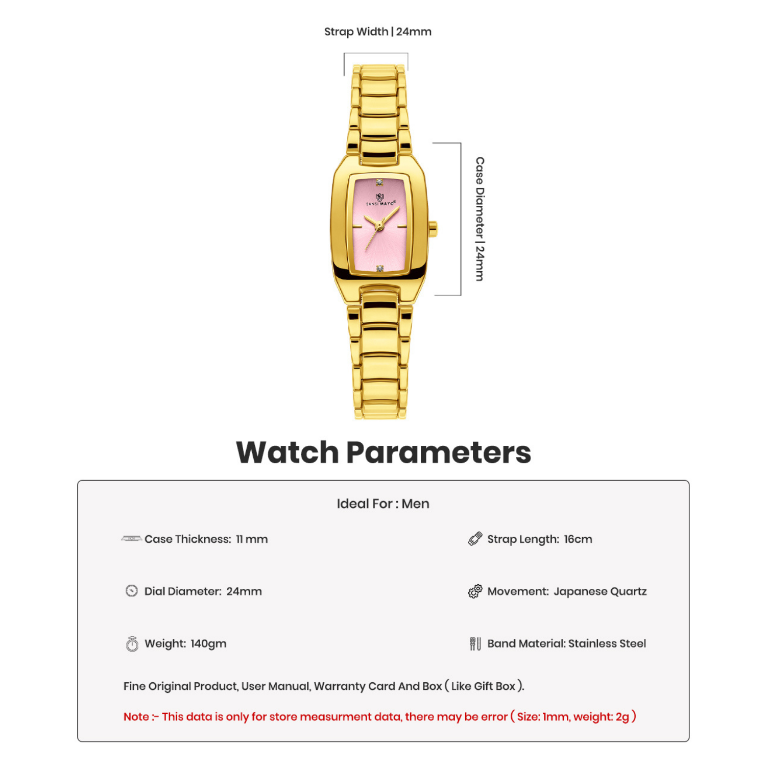 Sansi Mayo Women's Square Pink & Gold Watch – Graceful Femininity in a Refined Design