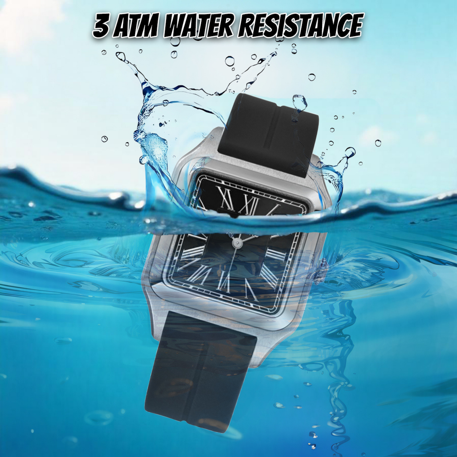 This SANSI MAYO men's all-black silicone watch offers a *classic* take on a minimalist design. The black silicone strap and matching black dial create a sophisticated and understated look. The square case adds a touch of contemporary edge. Powered by a precise quartz movement for accurate timekeeping and backed by a 1-year warranty.