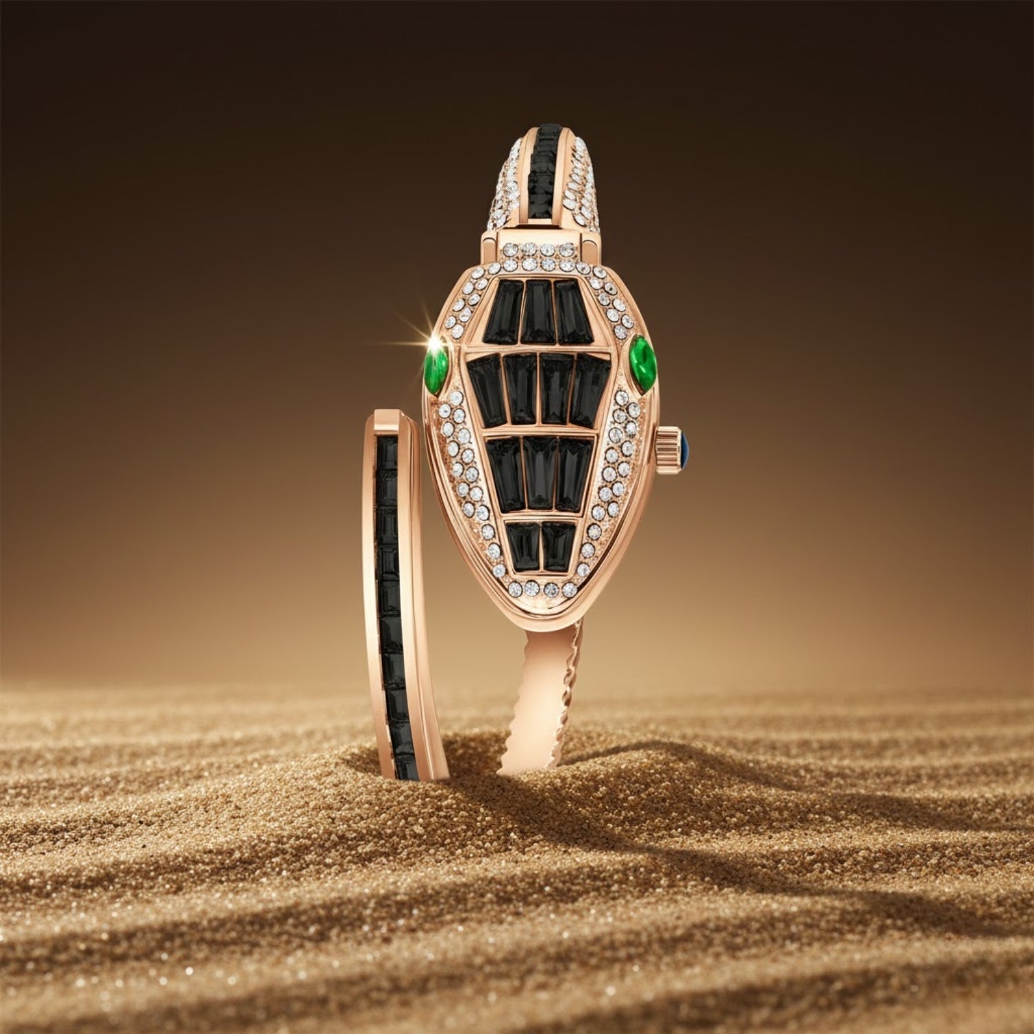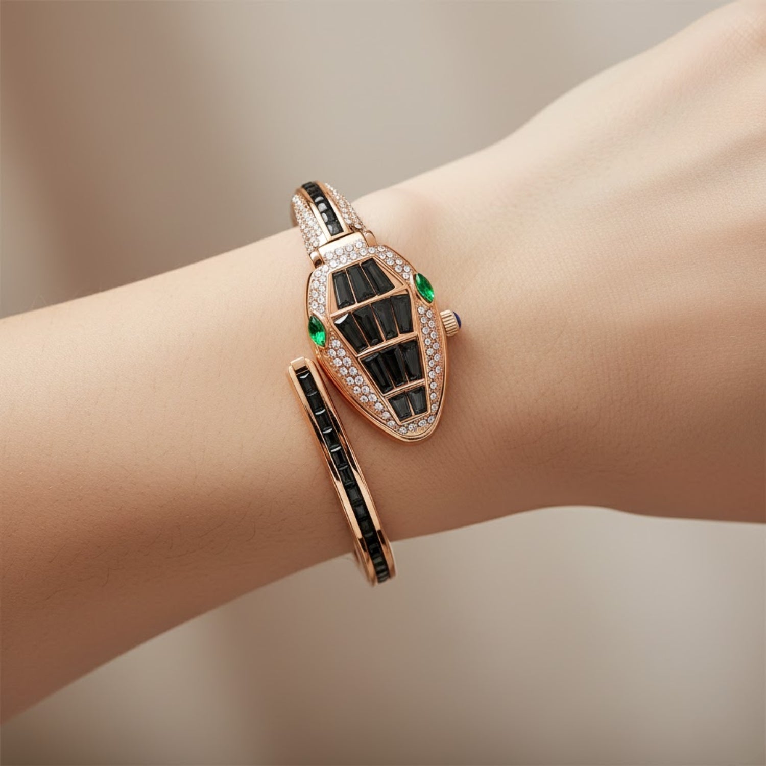 Python Rose Gold And Black Bracelet Watch – White Dial | Sansi Mayo