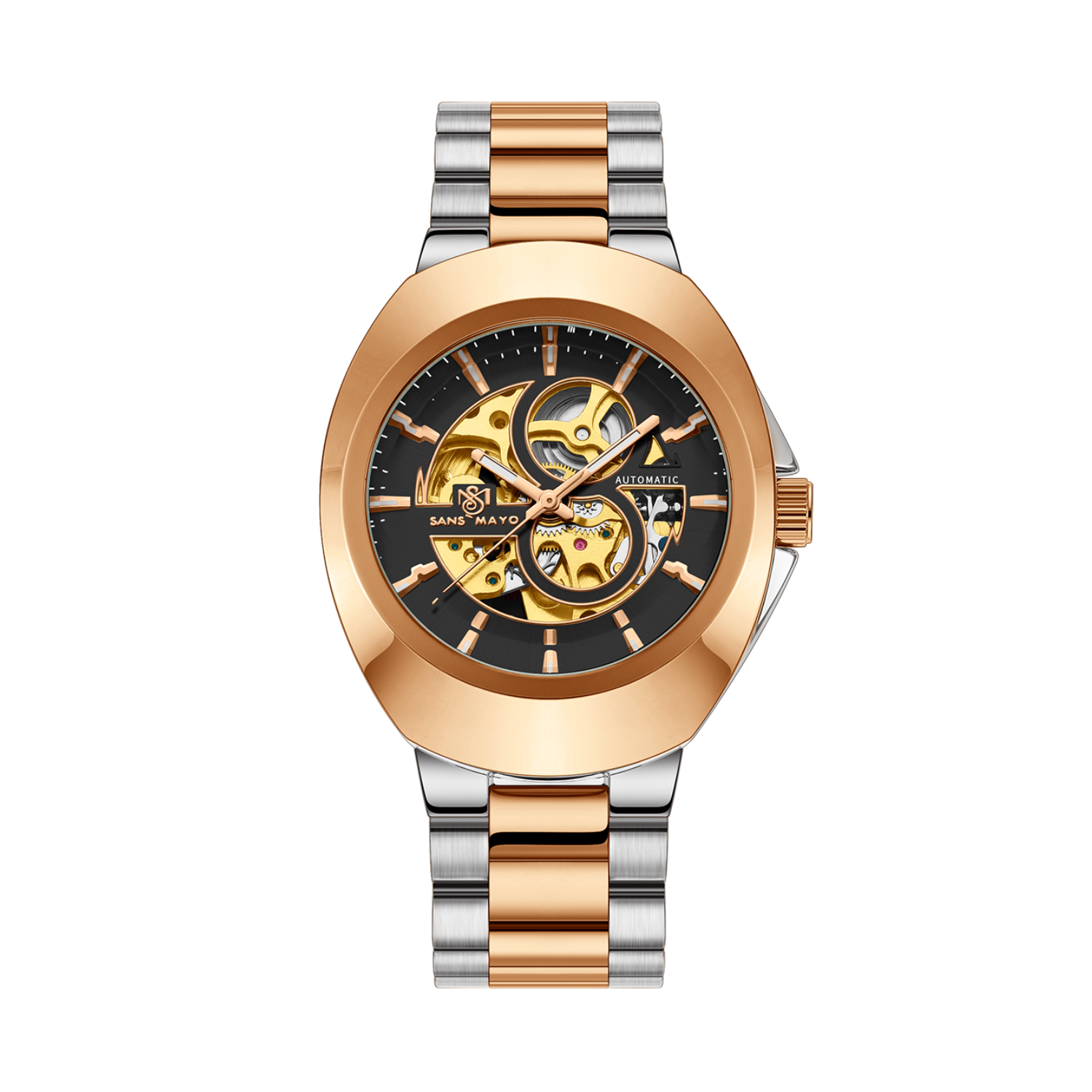 Step into refined sophistication with the Sansi Mayo Automatic Watch in dual-tone rose gold and silver. Featuring an open-heart black dial and self-winding movement, this timepiece is a mechanical marvel — combining heritage watchmaking with modern flair.