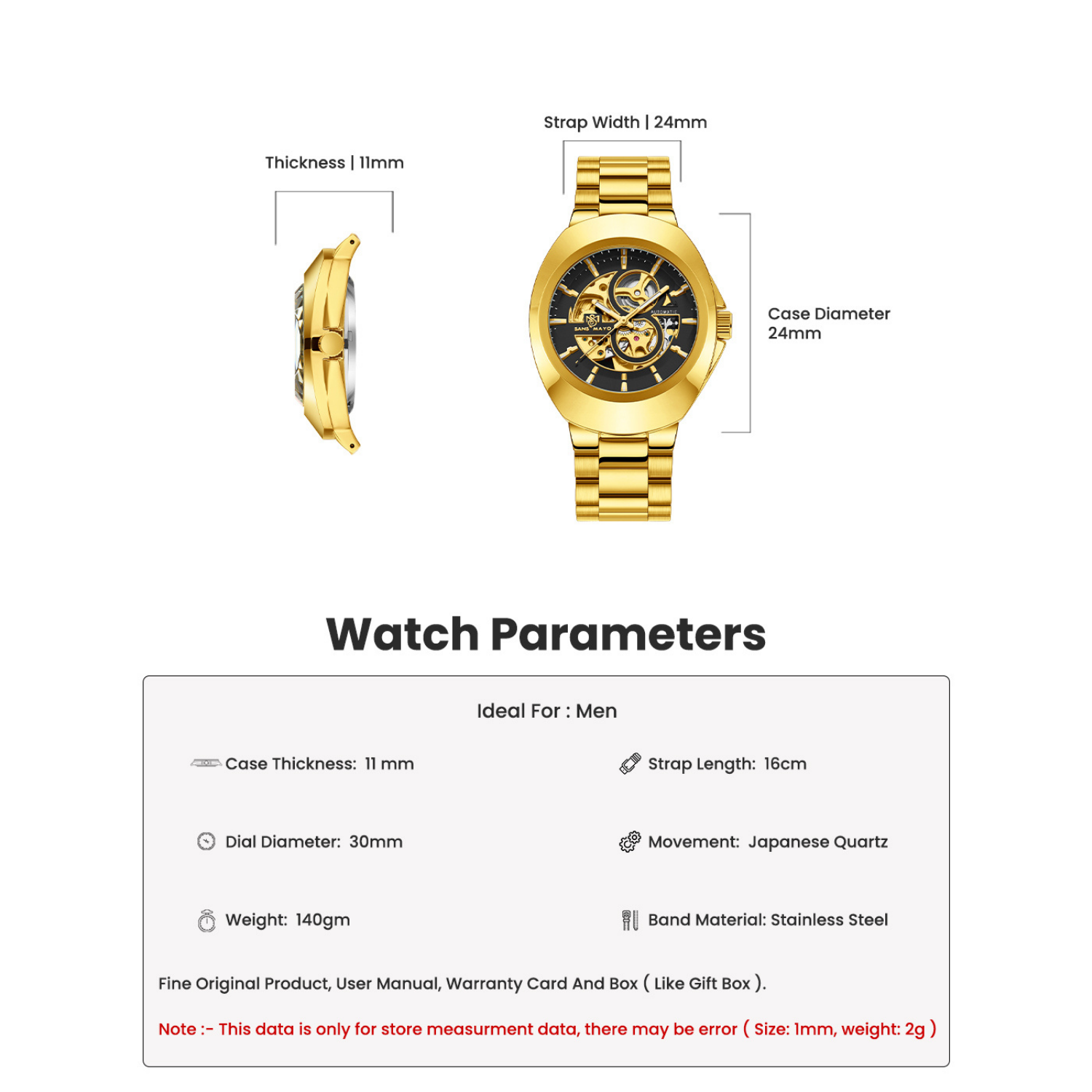 Elevate your style with the Sansi Mayo Gold Edition — a striking blend of bold black and gleaming gold. Featuring a self-winding movement and open-heart dial, this automatic timepiece is the perfect union of mechanical mastery and regal design.