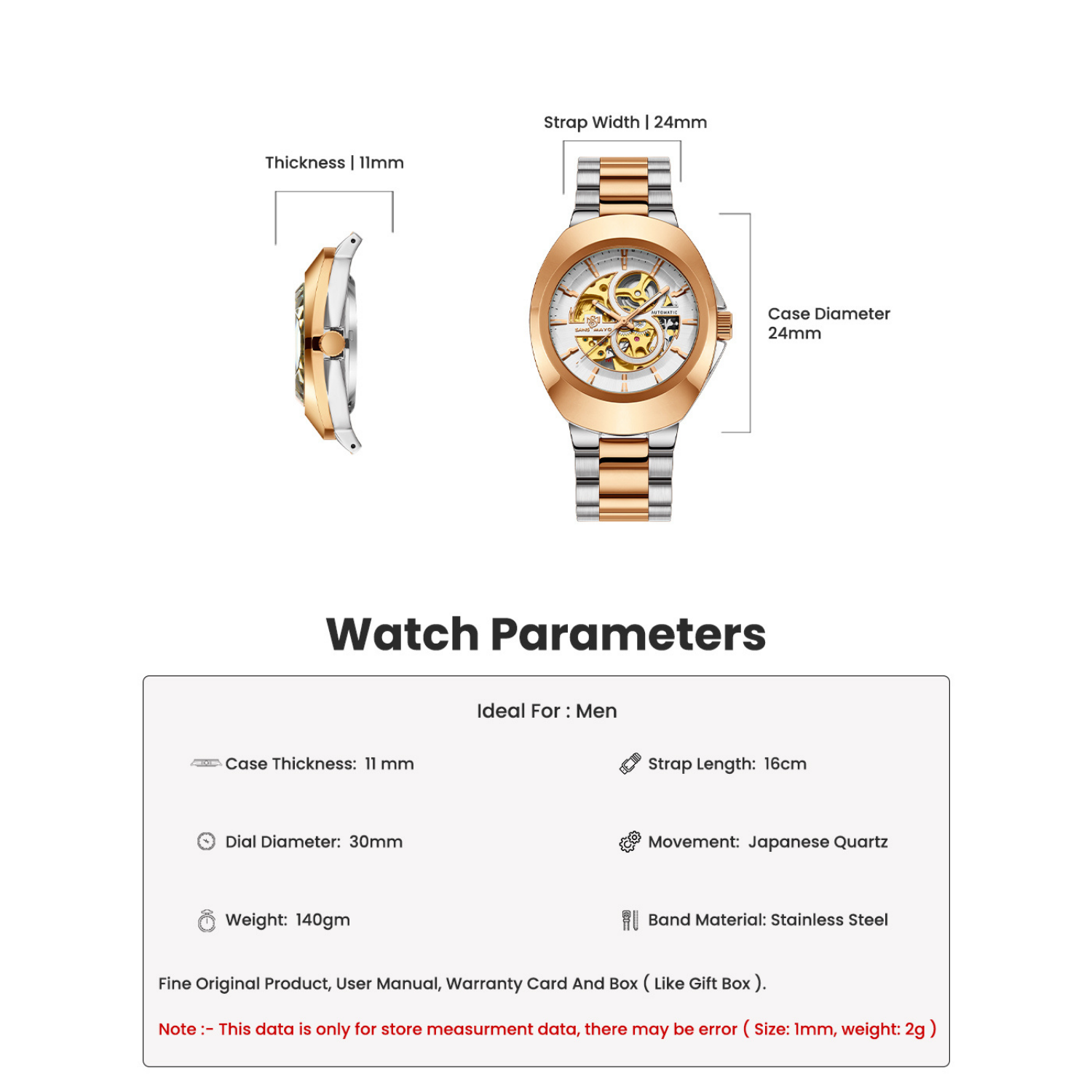 Case Material: Zinc Alloy with IP Rose Gold Plating