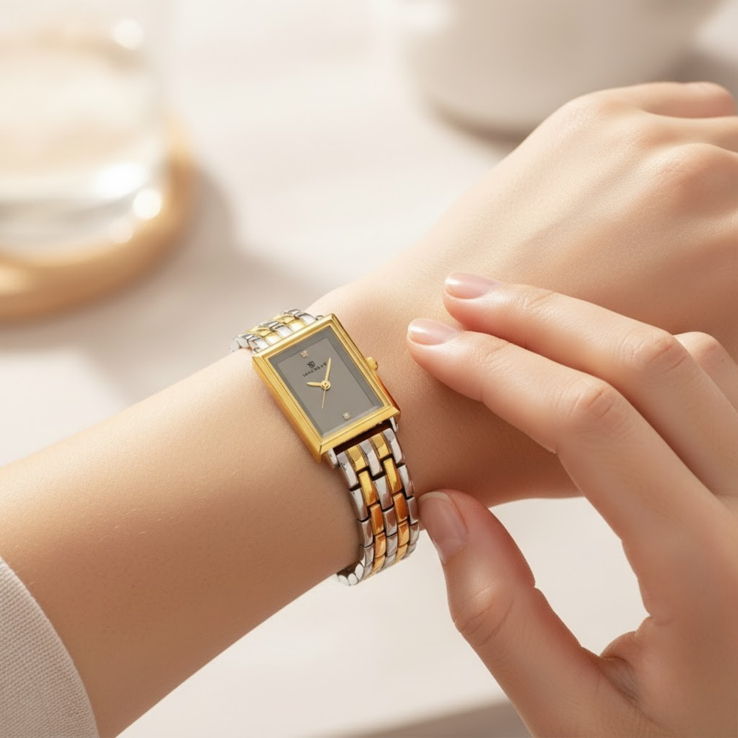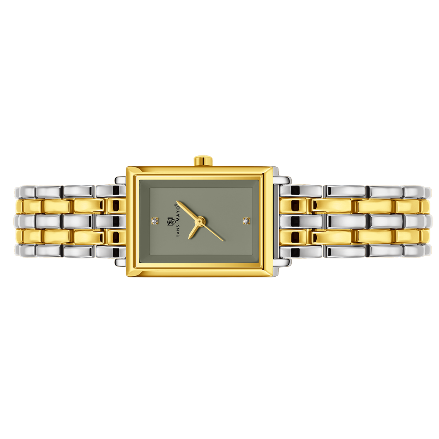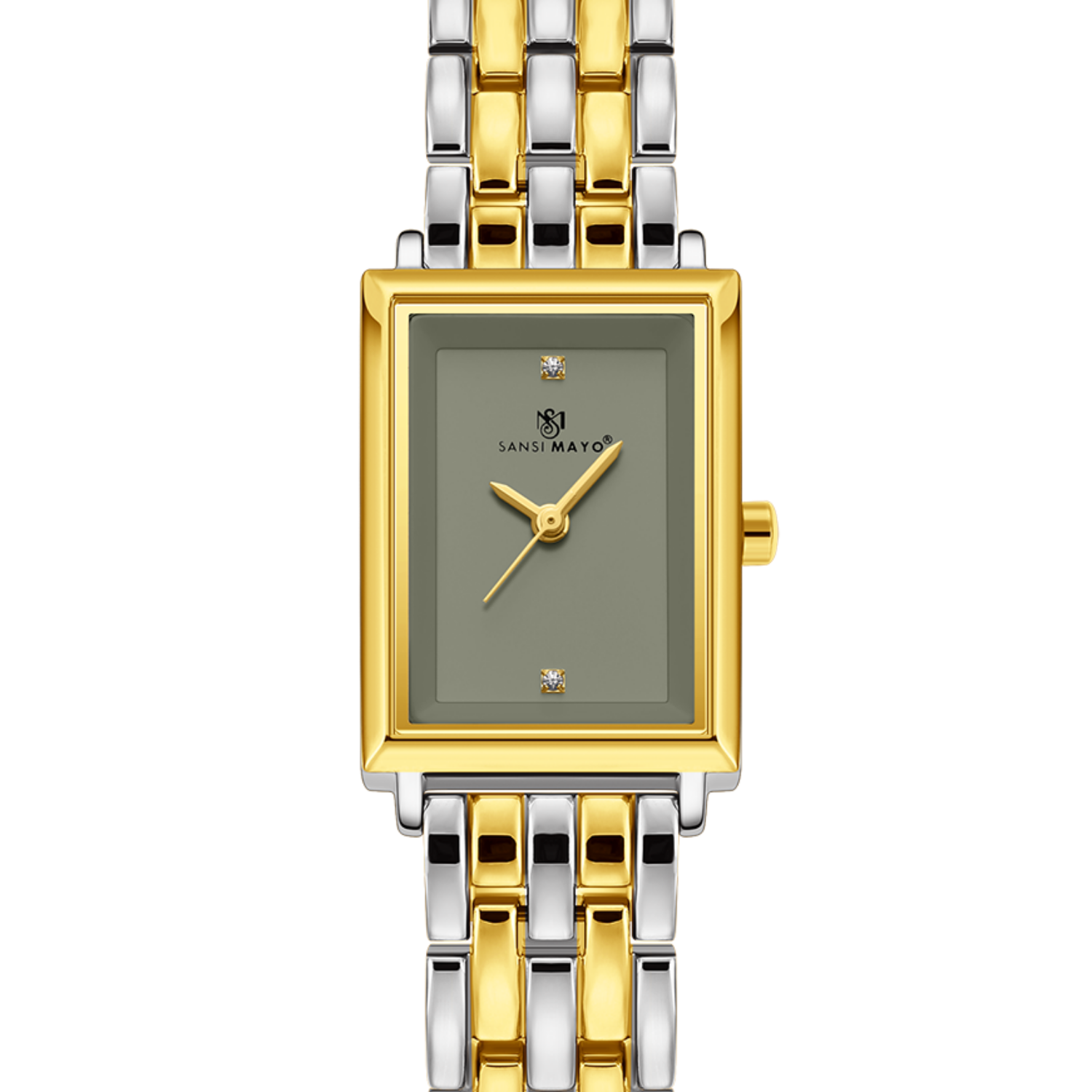 Sansi Mayo Women's Square Green & Gold Watch – Unique Two-Tone Sophistication