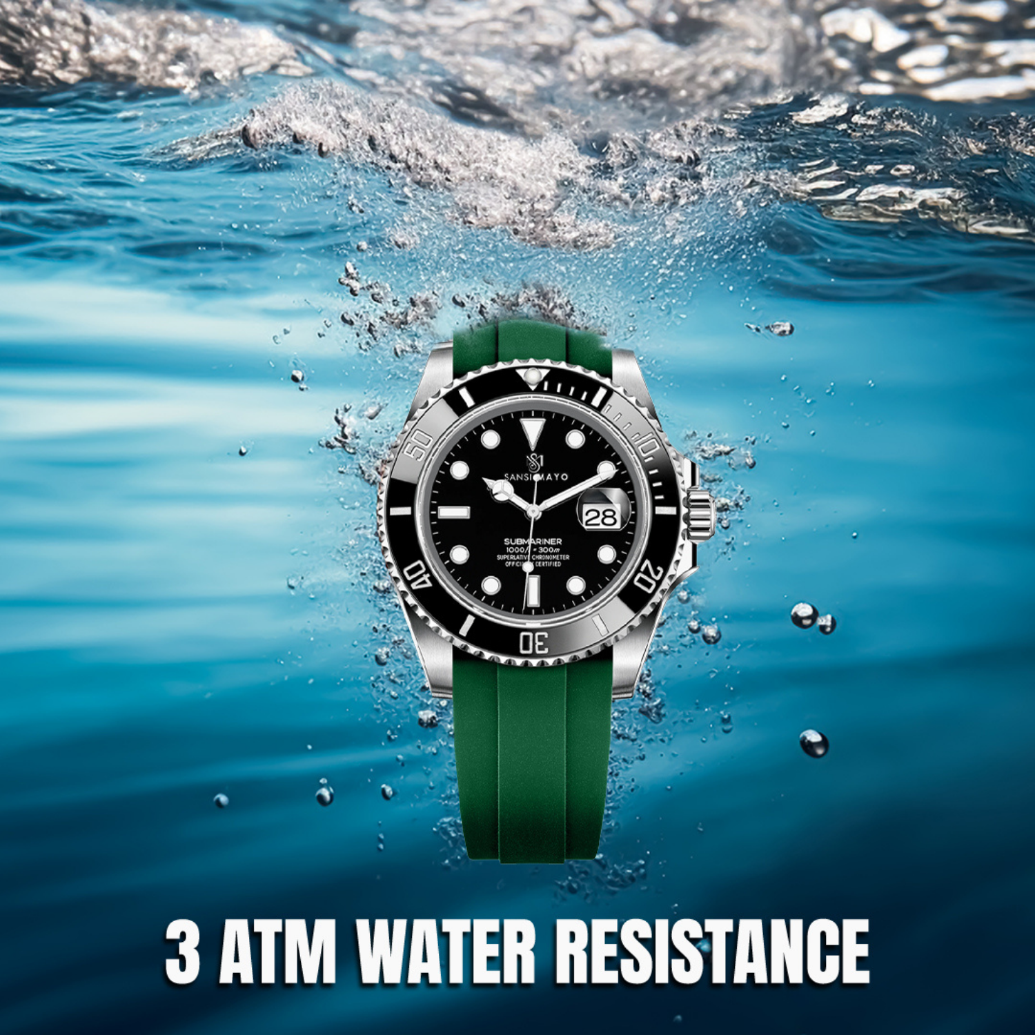• Water-resistant up to 50 meters for added protection