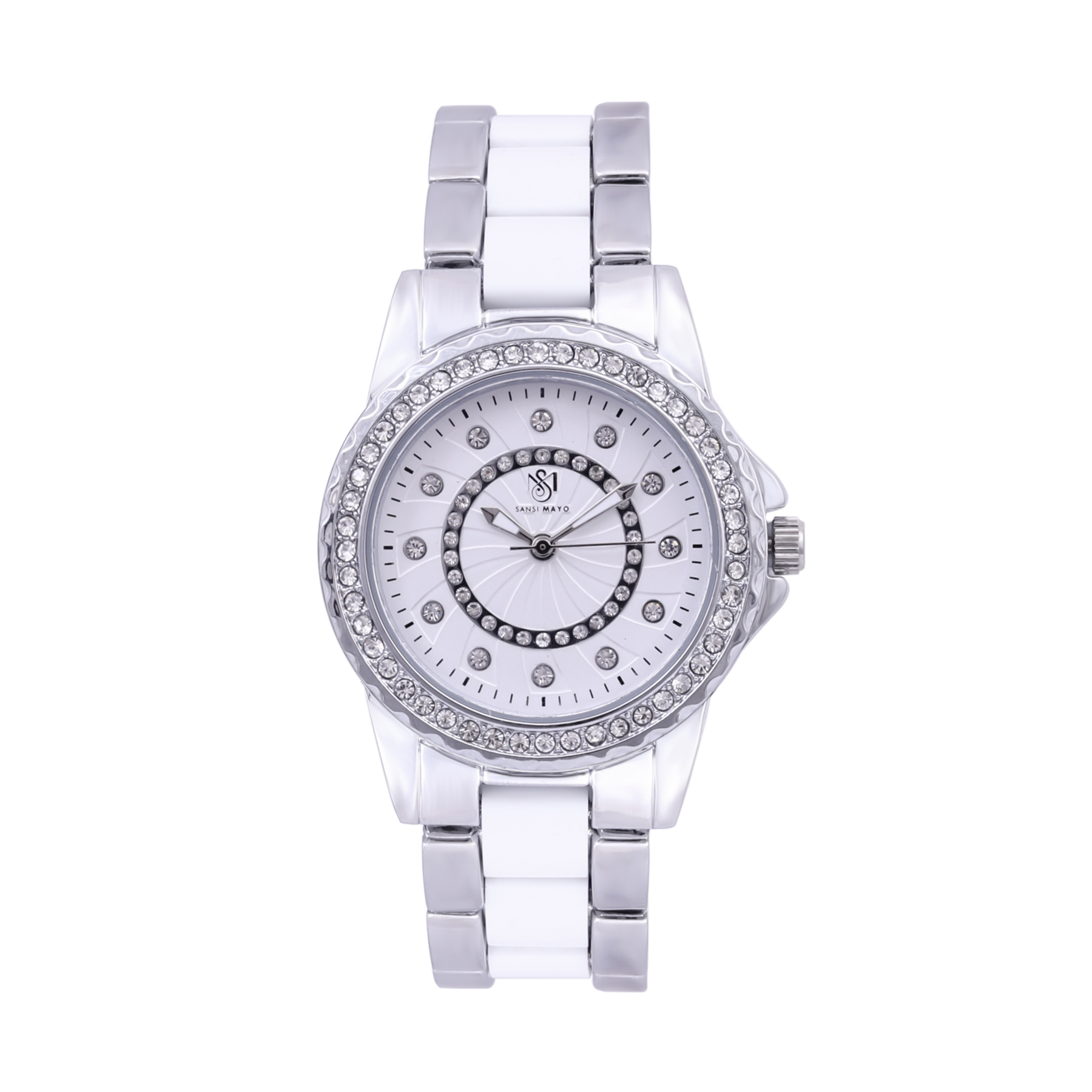 Embrace timeless sophistication with the SansiMayo Round Two Tone Wrist Watch - Silver Elegance. Featuring a round alloy case with IPS + IP white plating and an IP silver case finish, this watch combines modern aesthetics with classic appeal. The steel band ensures durability and comfort, making it ideal for everyday wear. Powered by a precise Japan movement and equipped with a Japan battery, it offers reliable and accurate timekeeping. With a 3 ATM water resistance rating, it withstands water splashes and brief immersion, enhancing its practicality. Elevate your wristwear with the Sansi Mayo Round Two Tone Wrist Watch - Silver Elegance, a perfect blend of style and functionality for any occasion.