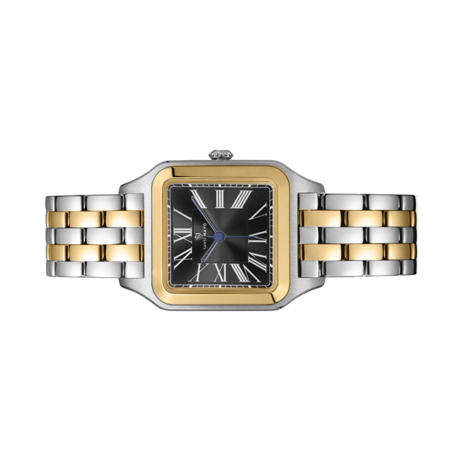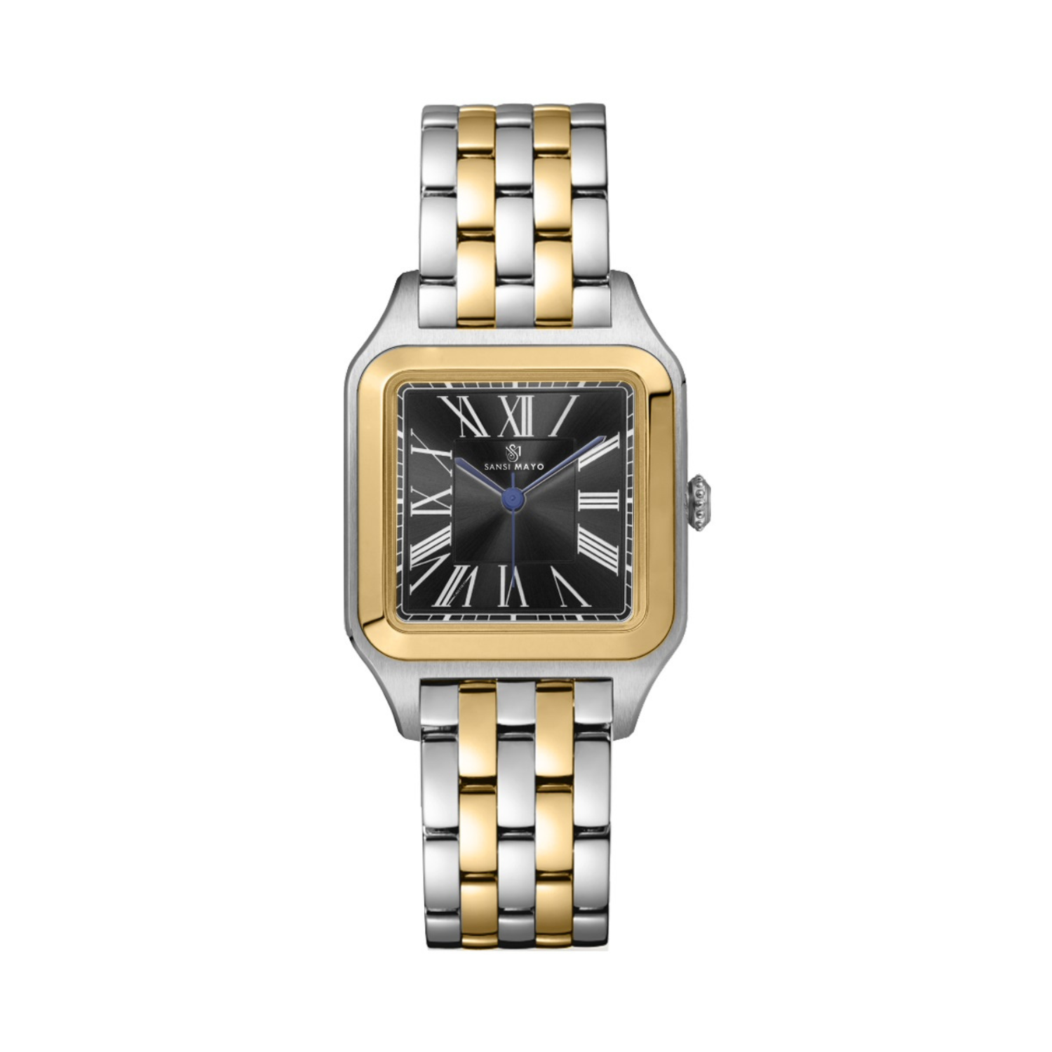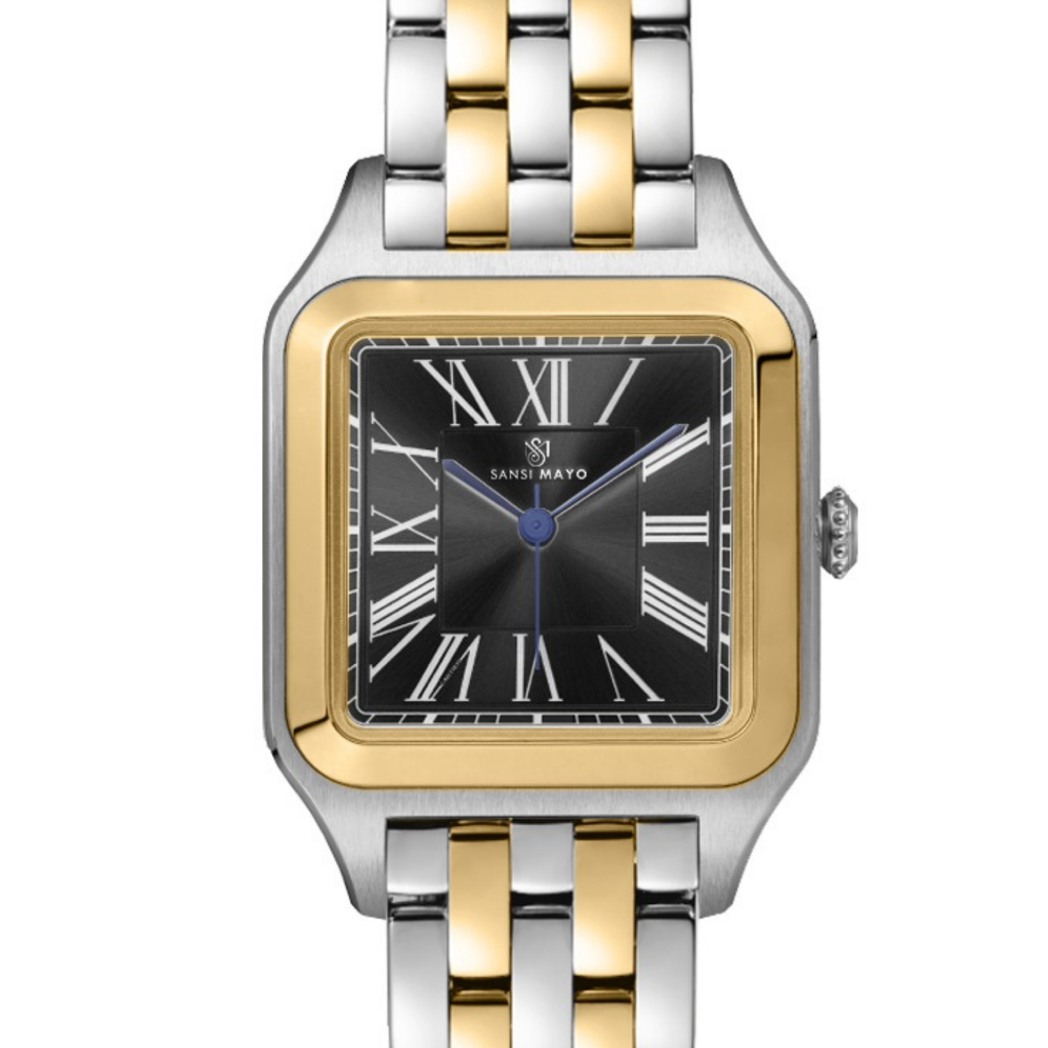 Make a bold statement with the Sansi Mayo square dial watch, featuring an authoritative black dial complemented by a luxurious gold-tone stainless steel band. The Roman numeral markers add a vintage-inspired sophistication, perfect for both formal and upscale casual occasions.