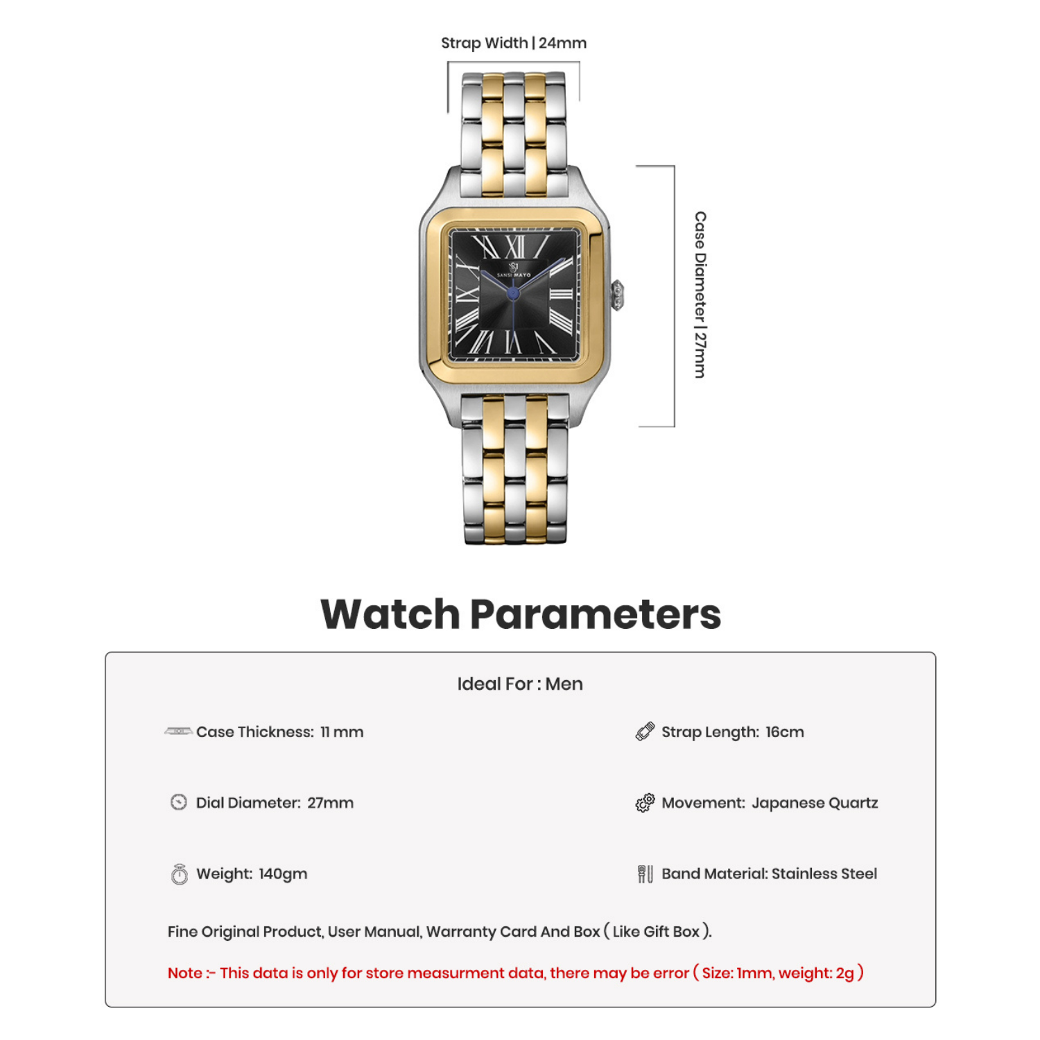 Sansi Mayo Men's Square Black & Gold Watch – Refined Power in Dual Tone