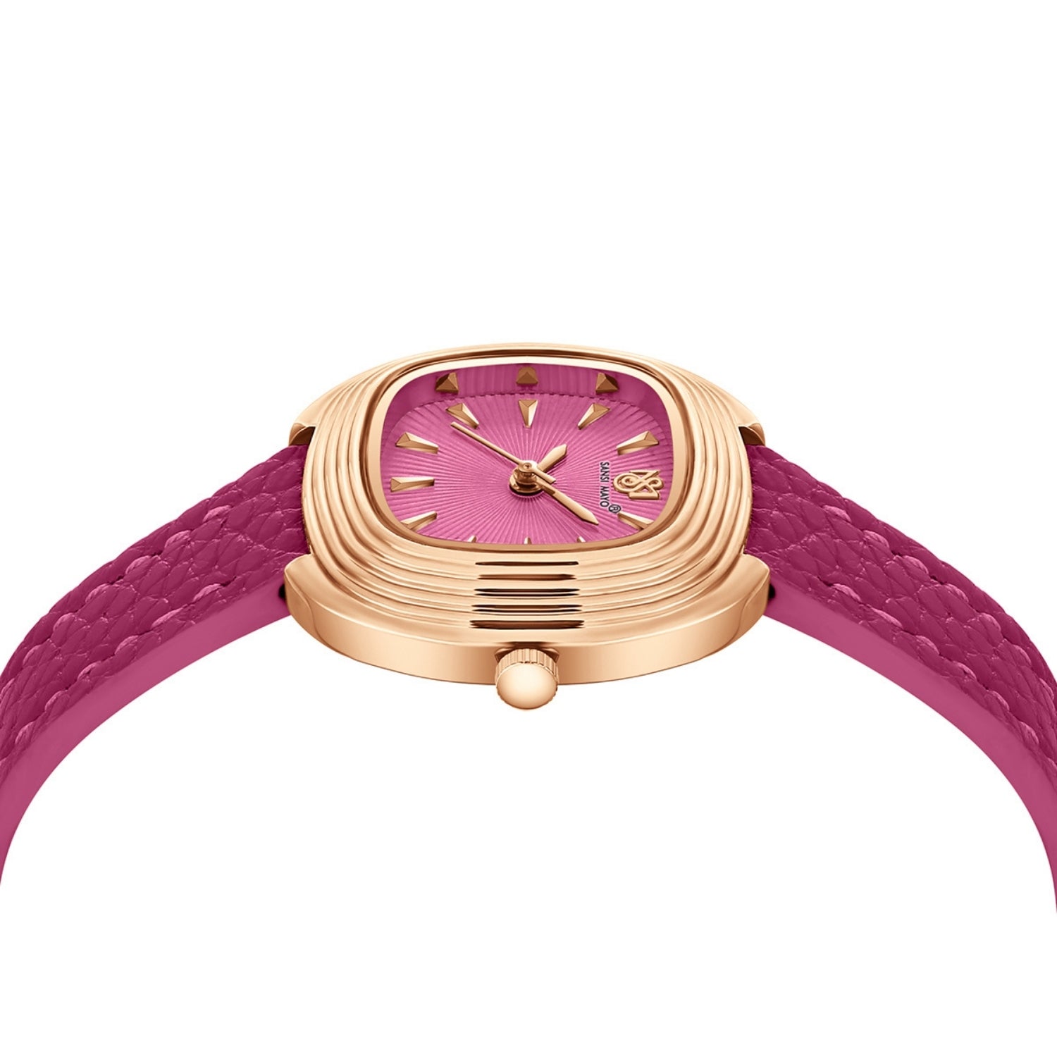 Step into refined style with the Sansi Mayo Verona Dark Pink Edition for women. Designed for those who cherish elegance in everyday life, this timepiece combines a soft dark pink dial with a matching leather strap, housed in a polished square stainless steel case with radiant rose gold IP plating.