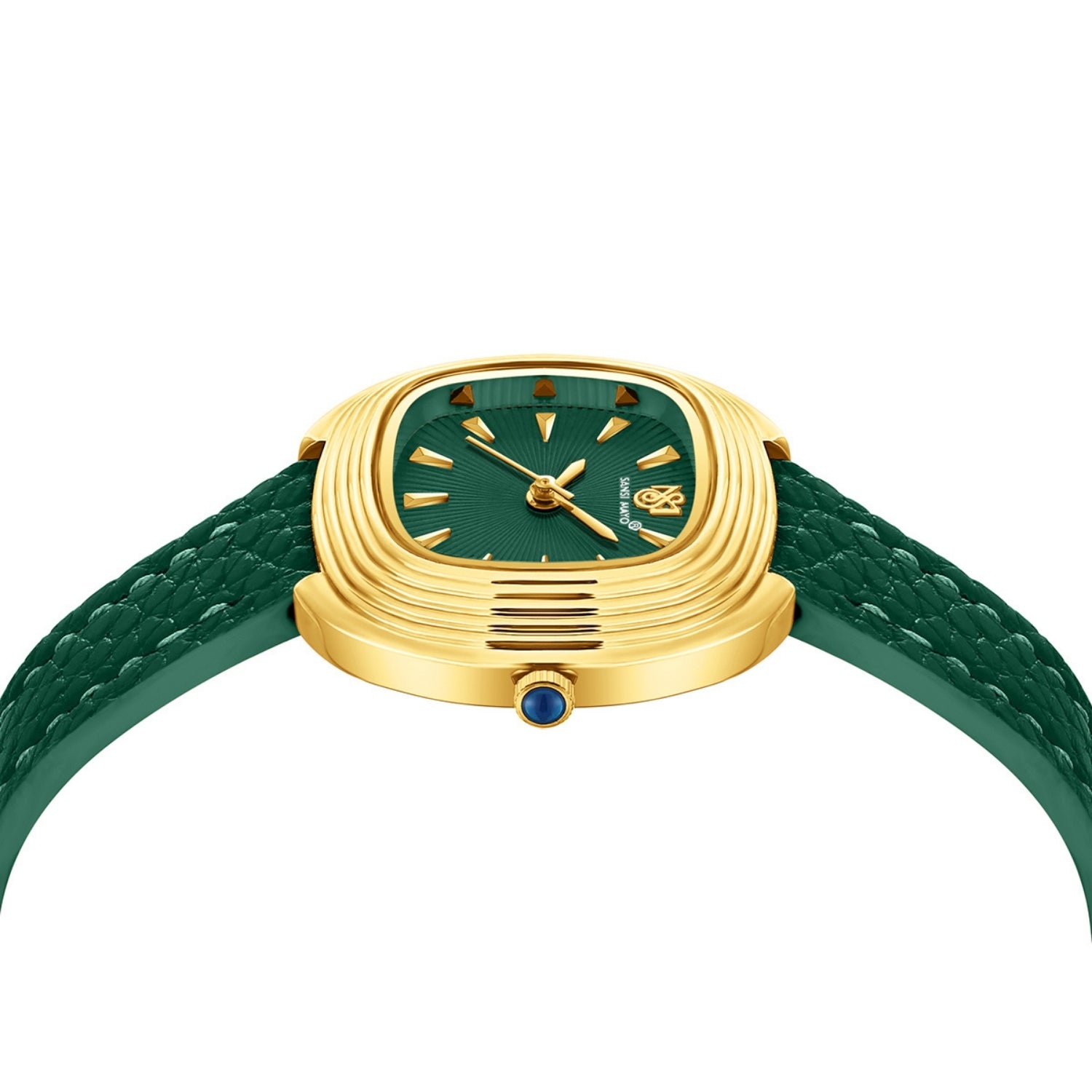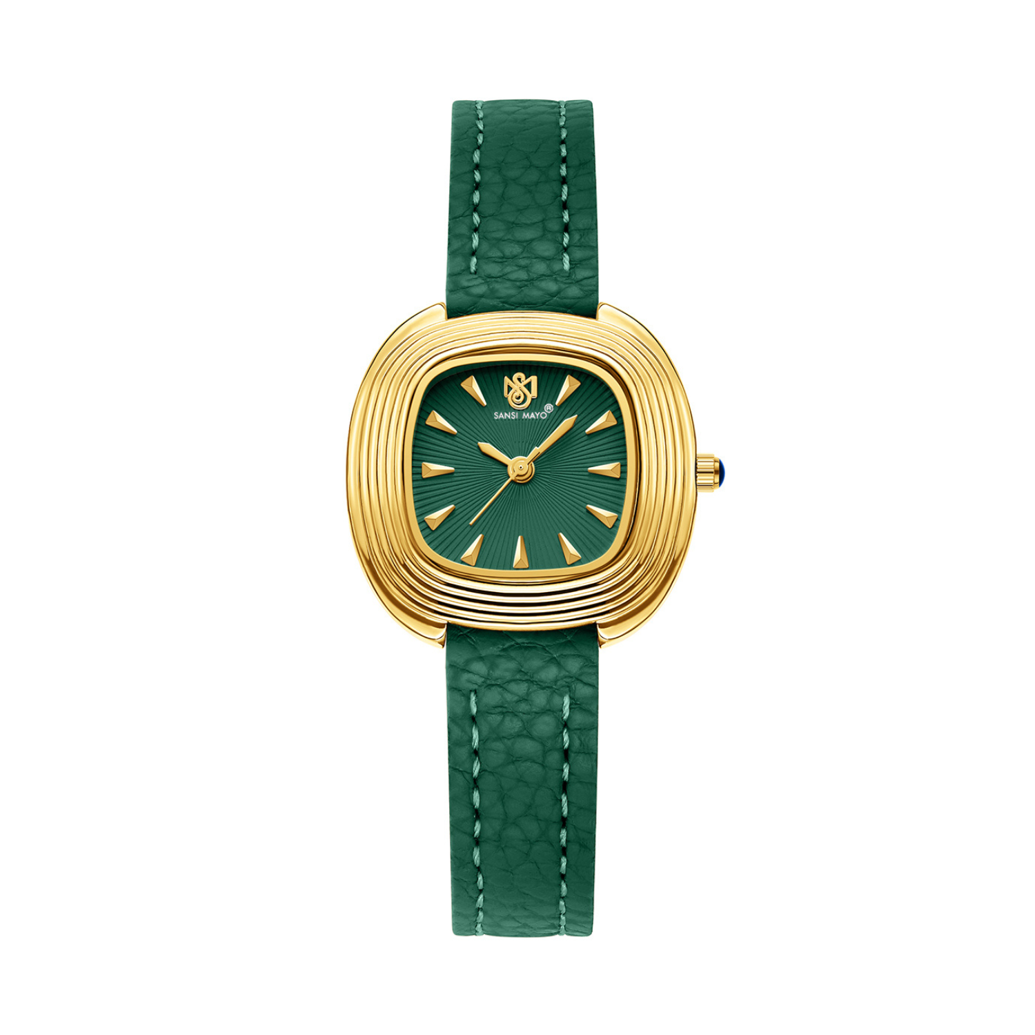 The Sansi Mayo Verona Green Edition is crafted for women who appreciate timeless elegance blended with a modern sense of style. Designed with a refined square silhouette, this watch features a polished gold-tone stainless steel case paired with a deep green dial that radiates sophistication and calm confidence.