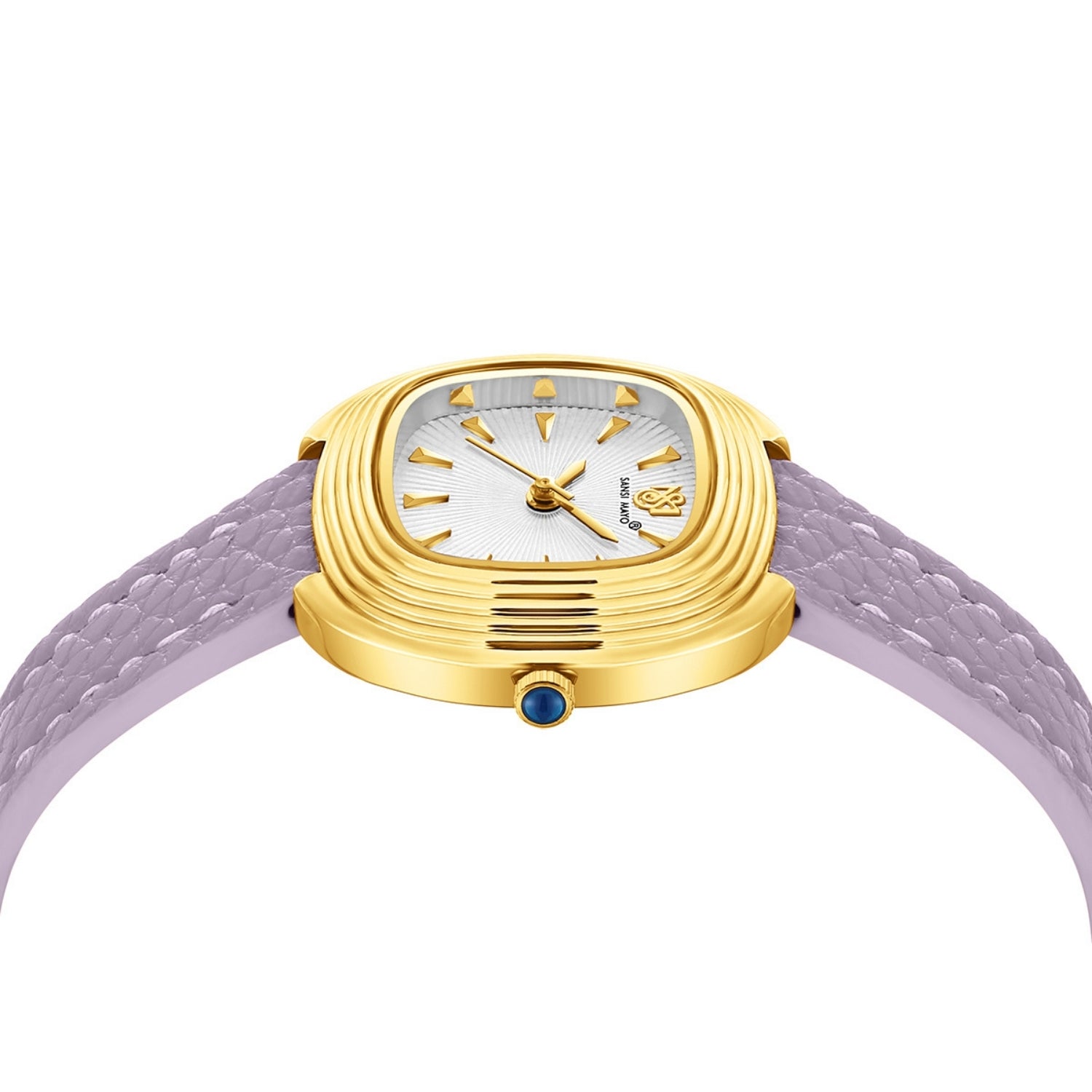 The Sansi Mayo Verona is designed for women who appreciate subtle luxury and refined aesthetics. Featuring a graceful square gold-tone stainless steel case, a clean white dial, and a soothing lavender leather strap, this watch blends modern femininity with timeless charm.