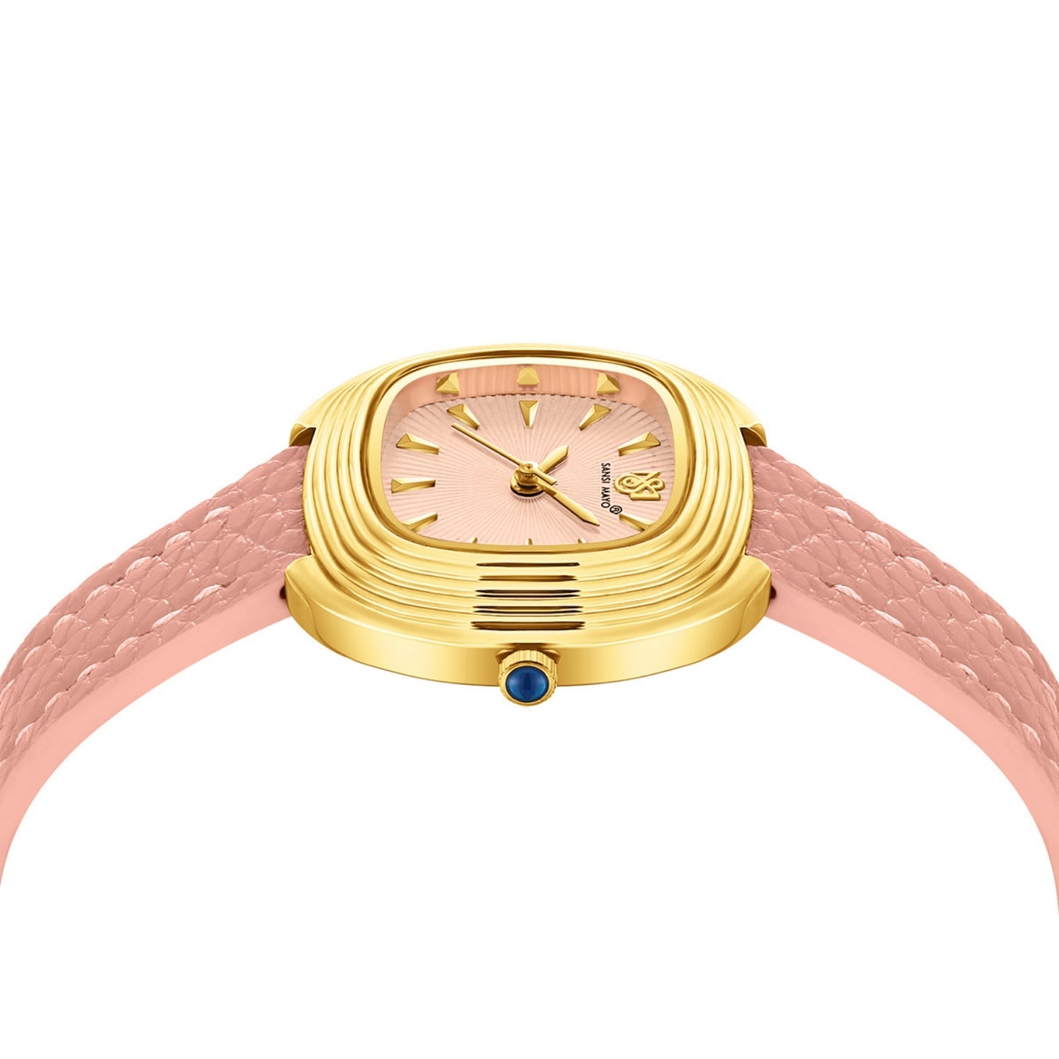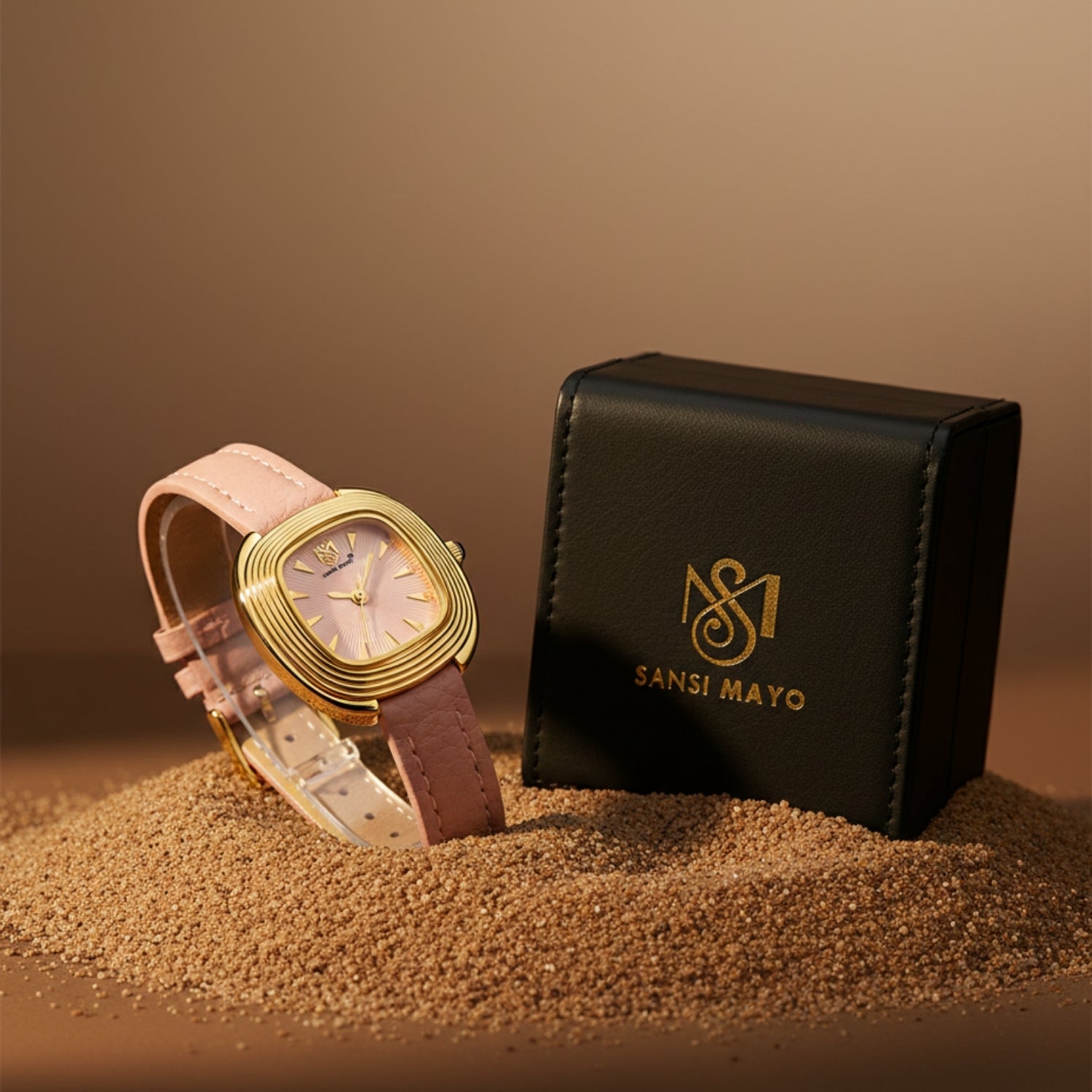 The Sansi Mayo Verona Light Pink Edition is crafted for women who love subtle sophistication with a modern edge. Designed with a square gold-tone stainless steel case, a harmonious light pink dial, and a matching leather strap, this timepiece reflects grace, confidence, and refined taste.