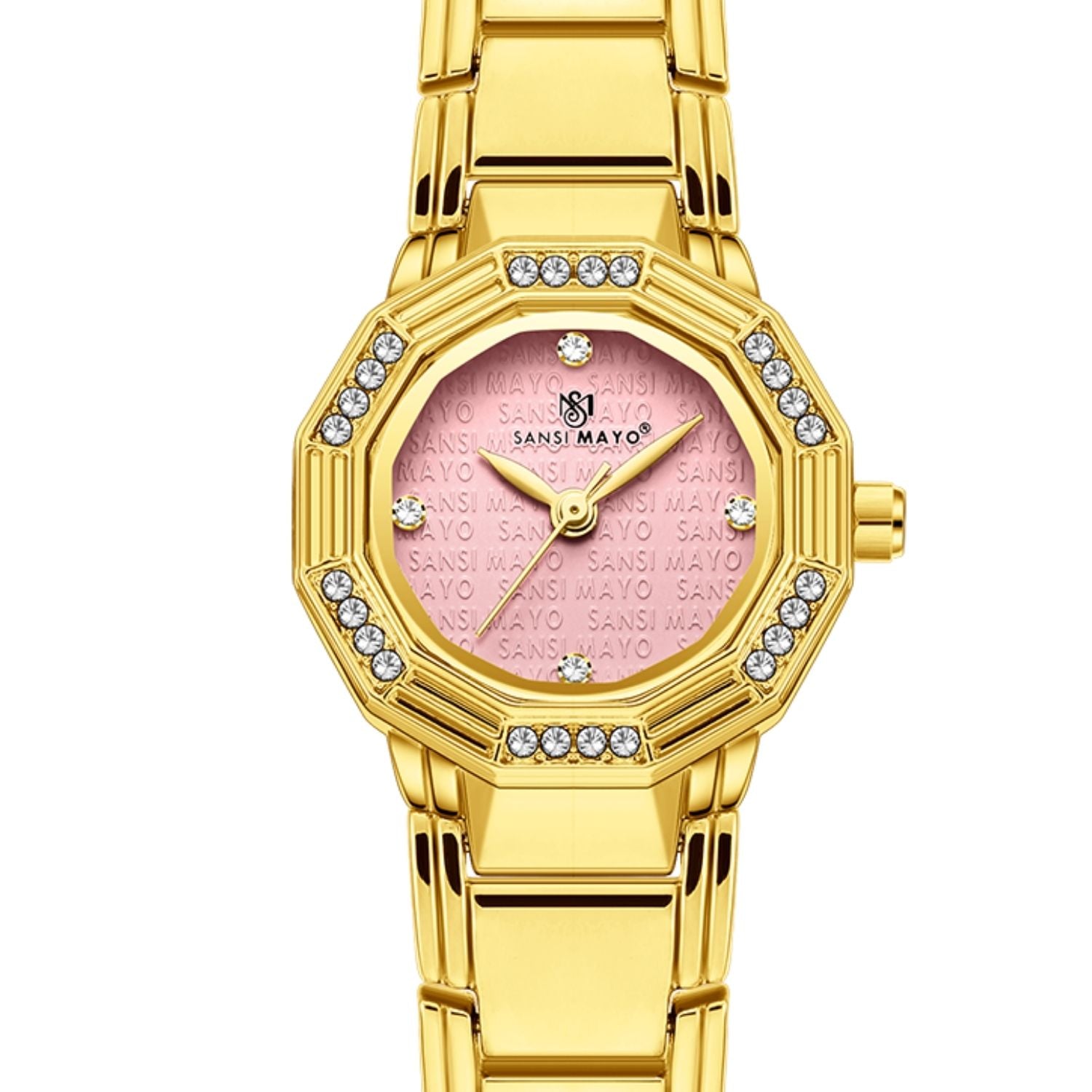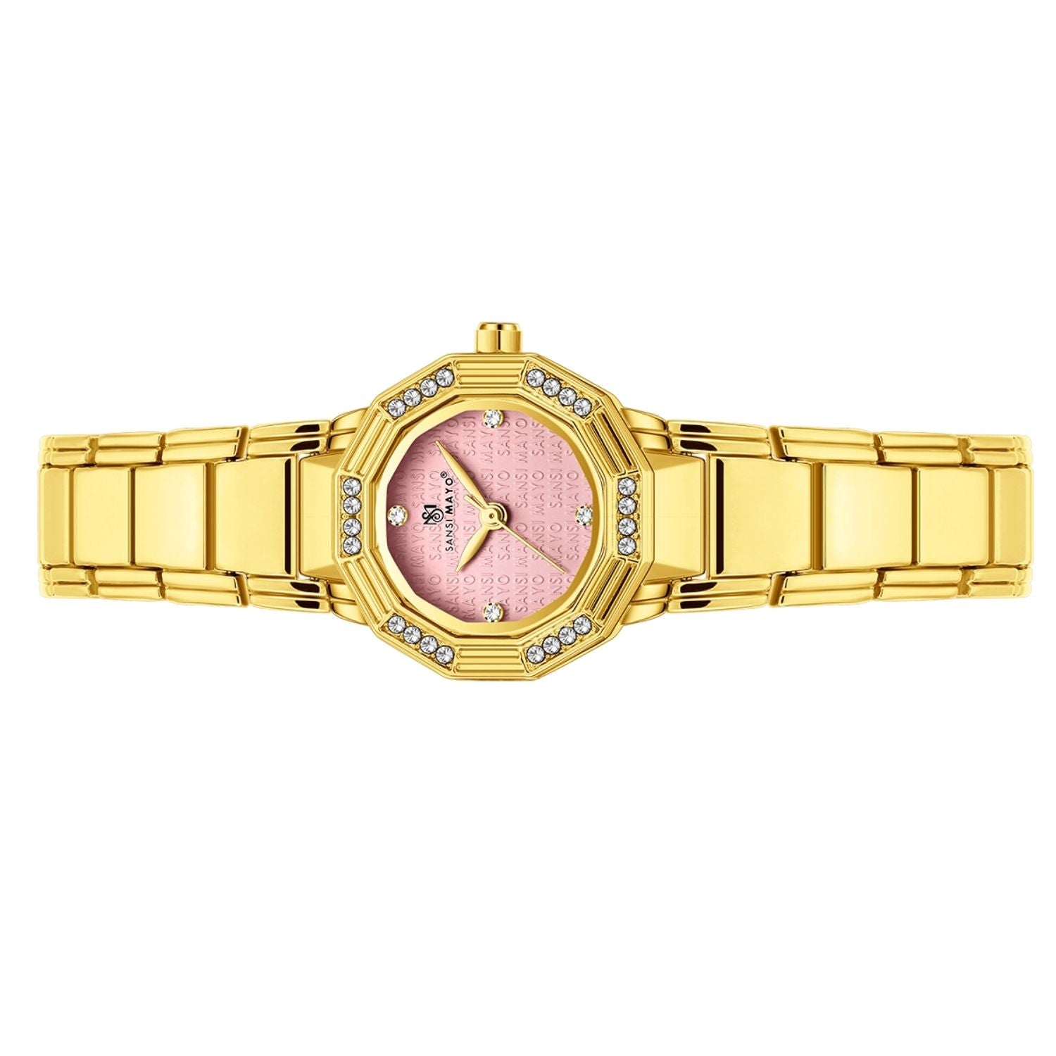 Sansi Mayo Women's Round Pink & Gold Watch – Feminine Grace with a Golden Finish