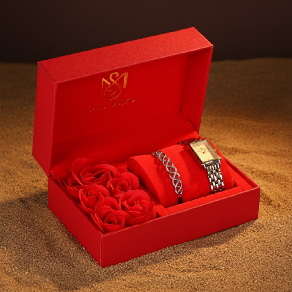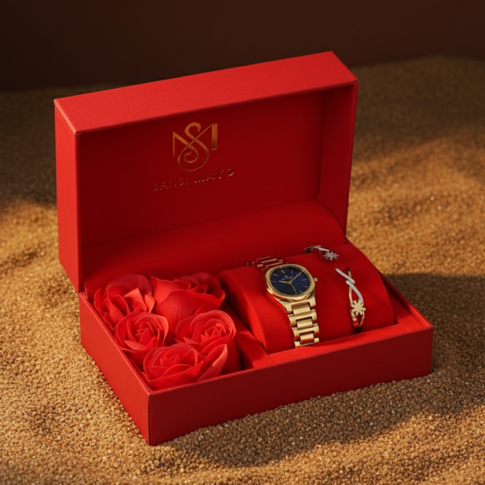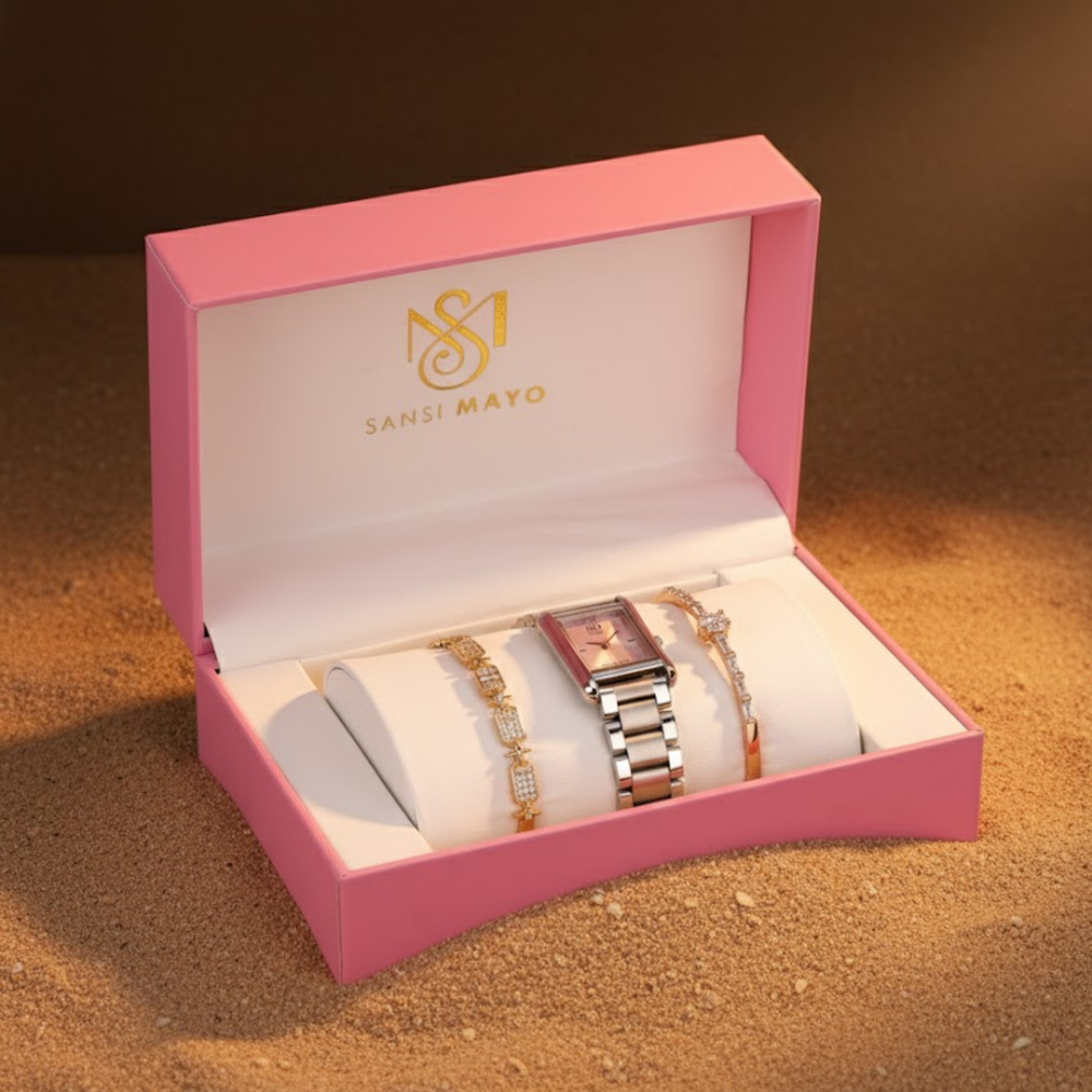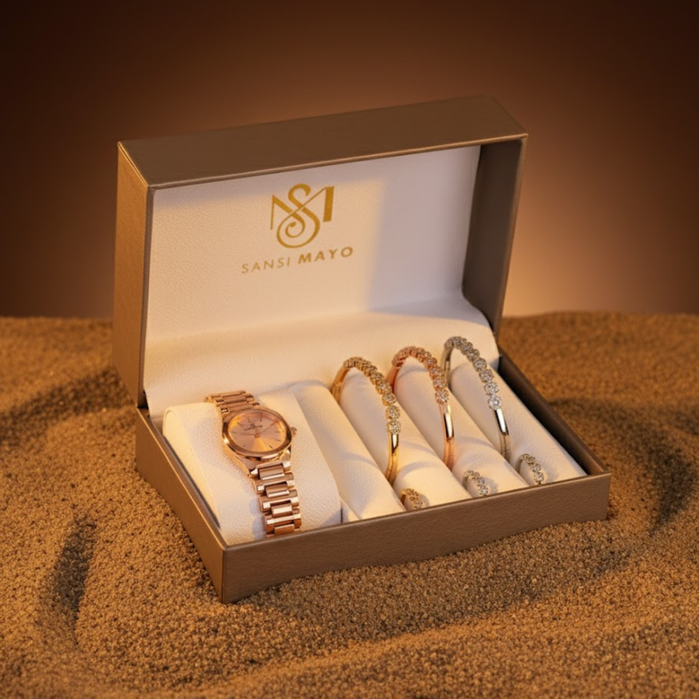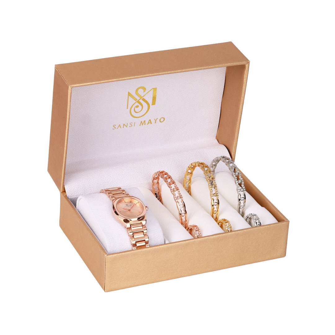 Sansi Mayo Women’s Watch & Jewellery Gift Set — Rose Gold with White Dial & Egyptian Stone