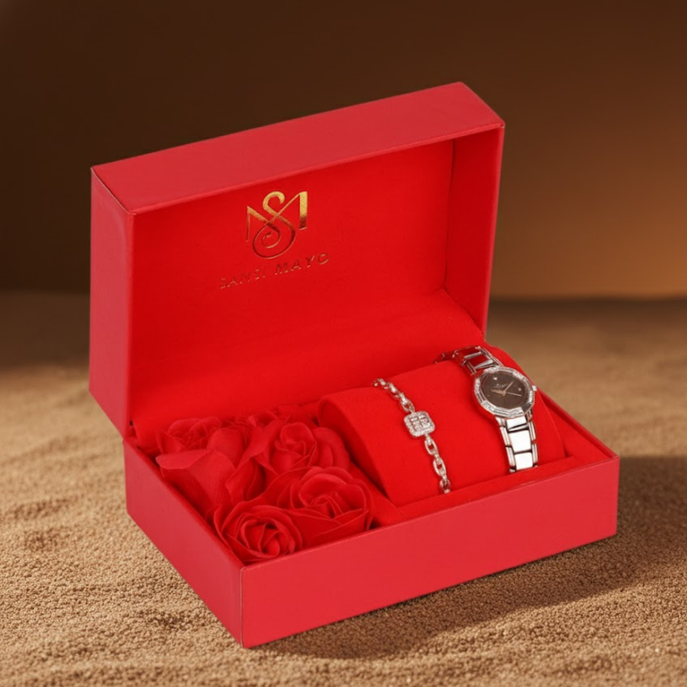 Sansi Mayo Women’s Watch & Jewellery Gift Set — Silver Rose Gold with Egyptian Stone