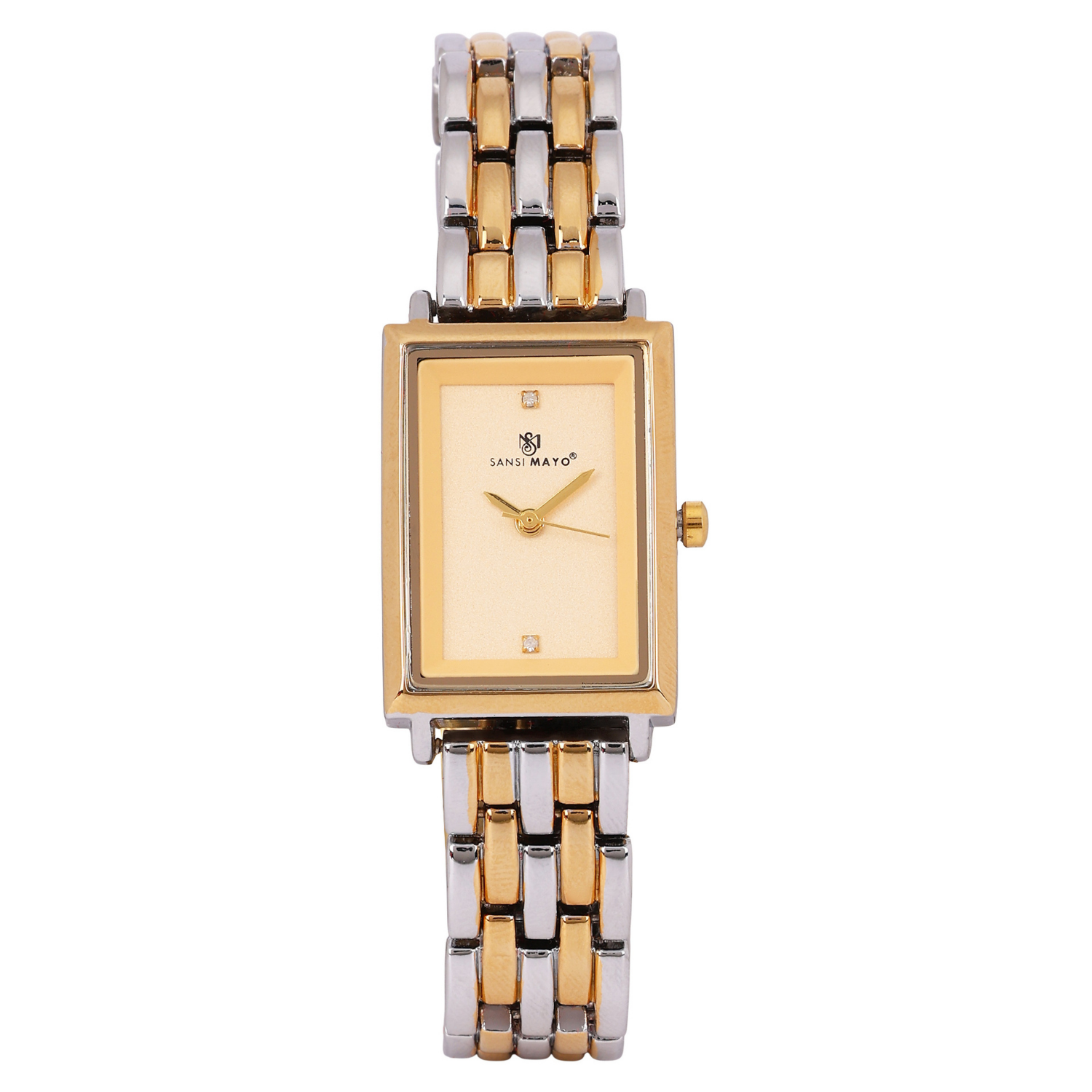 Sansimayo Women’s Grey Dial Watch with Bracelet – Two Tone Silver Gold