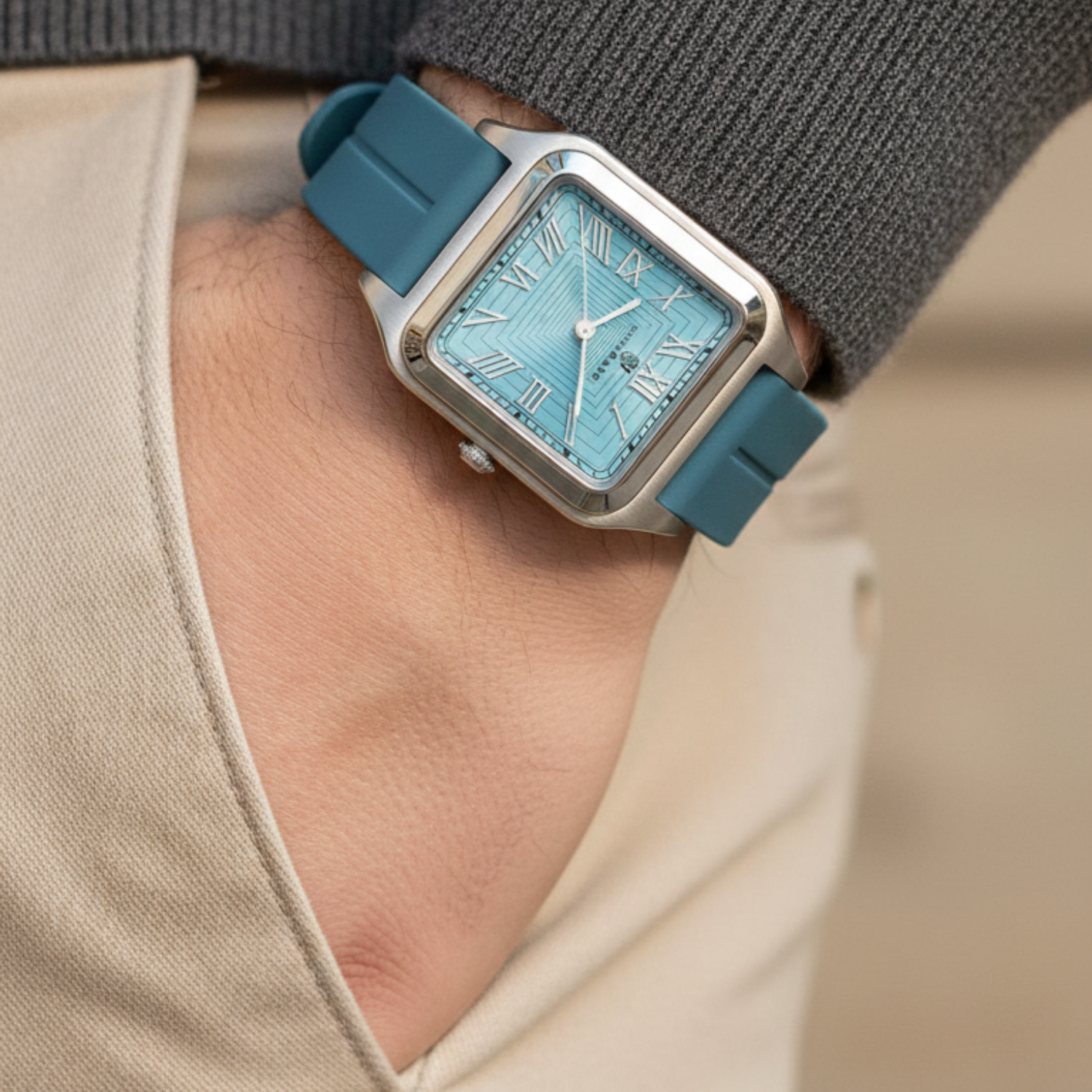 Sansi Mayo Men's Turquoise on Turquoise Silicone Square Case Watch - Refreshing and Unique Style