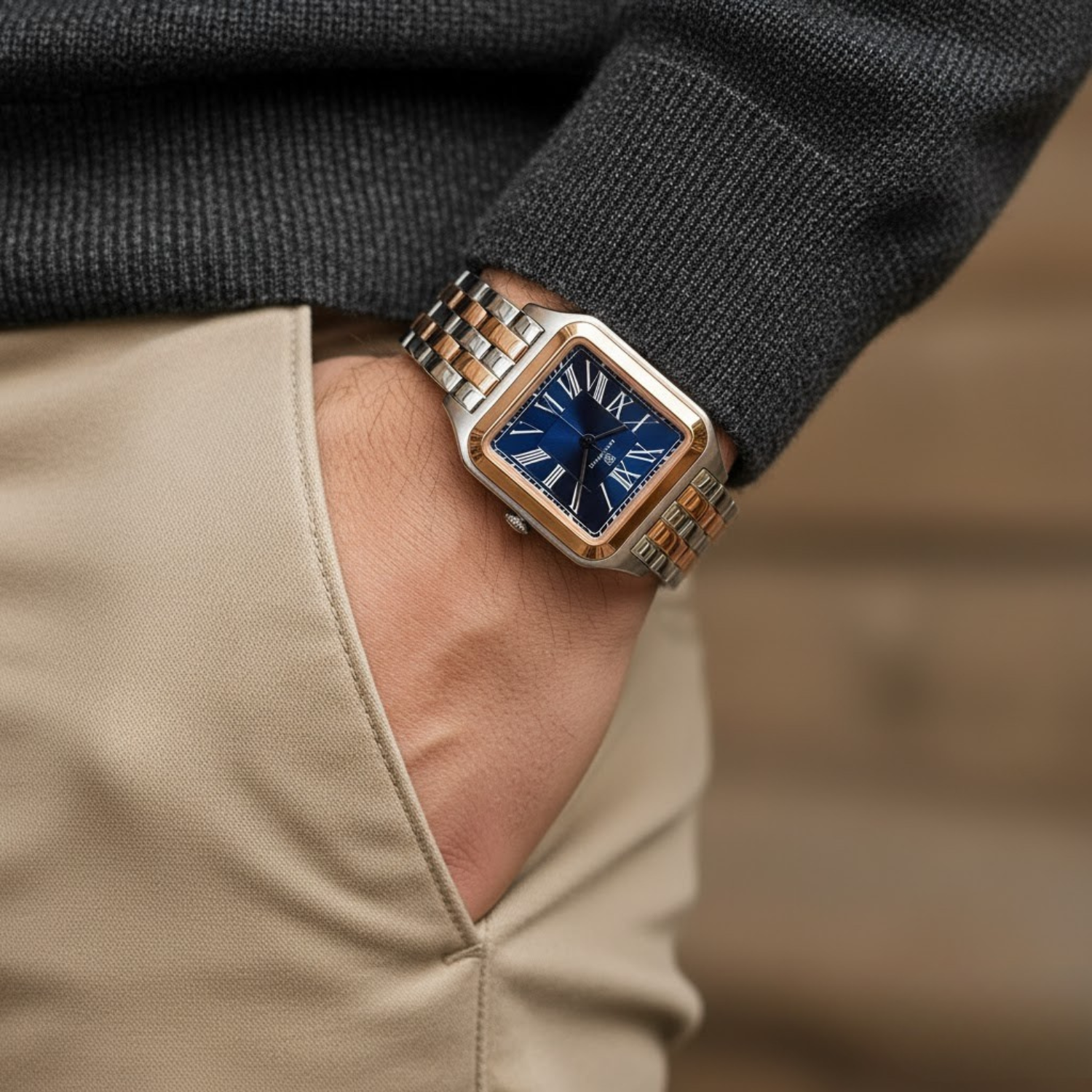 Sansi Mayo Men's Square Blue & Rose Gold Watch – Stylish & Sophisticated