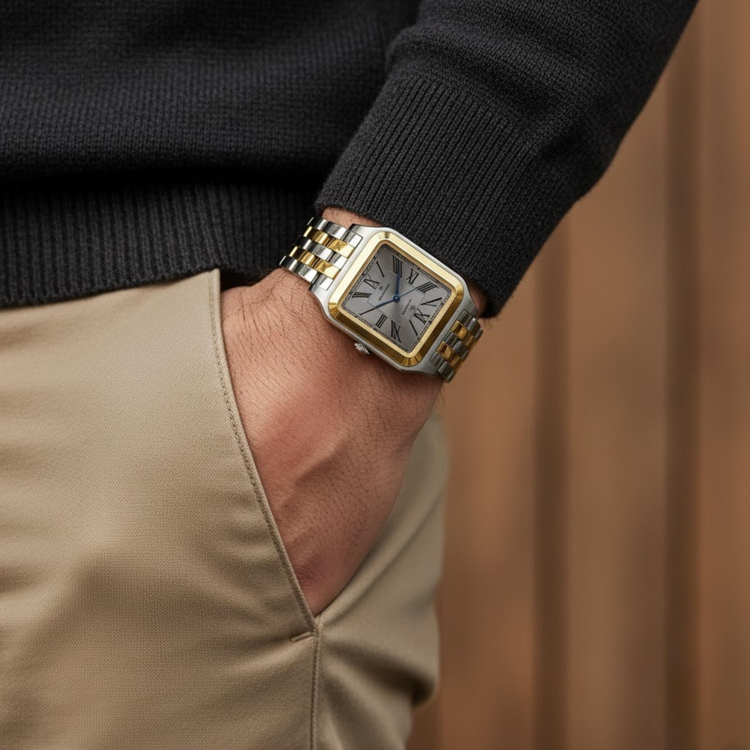 Sansi Mayo Men's Square Grey & Gold Watch – Understated Luxury, Refined Design