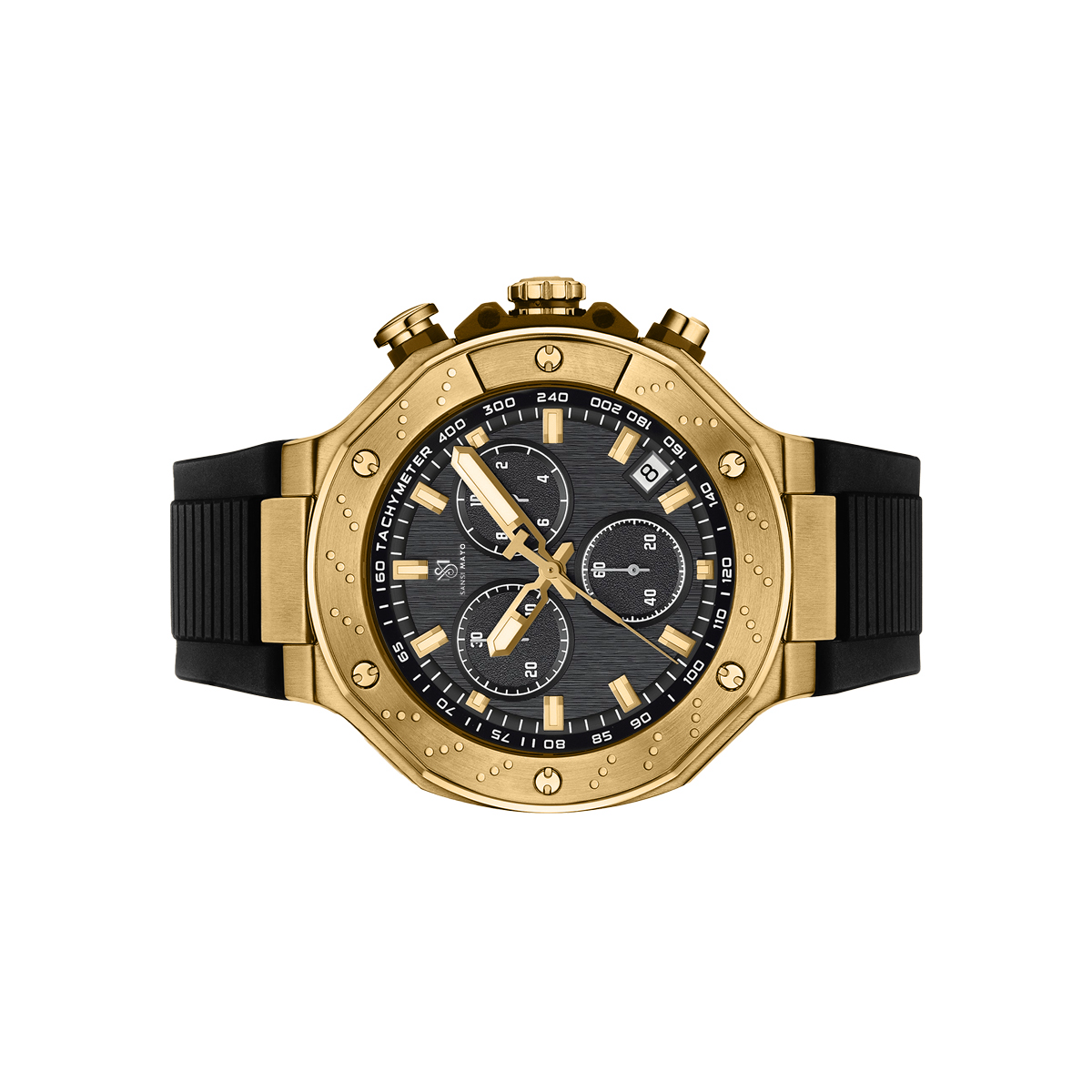 Sansi Mayo Romano Black Dial Men’s Watch — Gold Case & Black Silicone Strap
