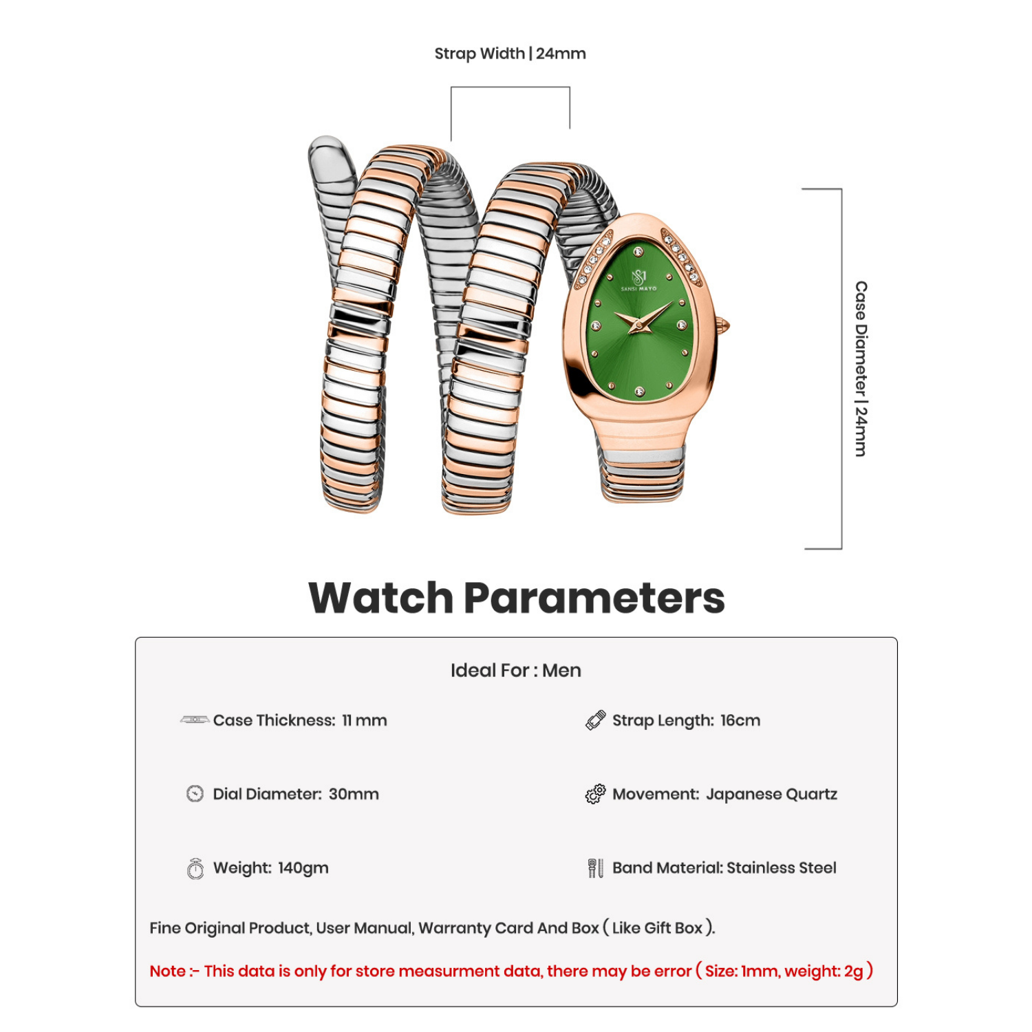 SANSI MAYO Verdant Glow Women's Rose Gold & Green Stainless Steel Watch - Radiant Charm