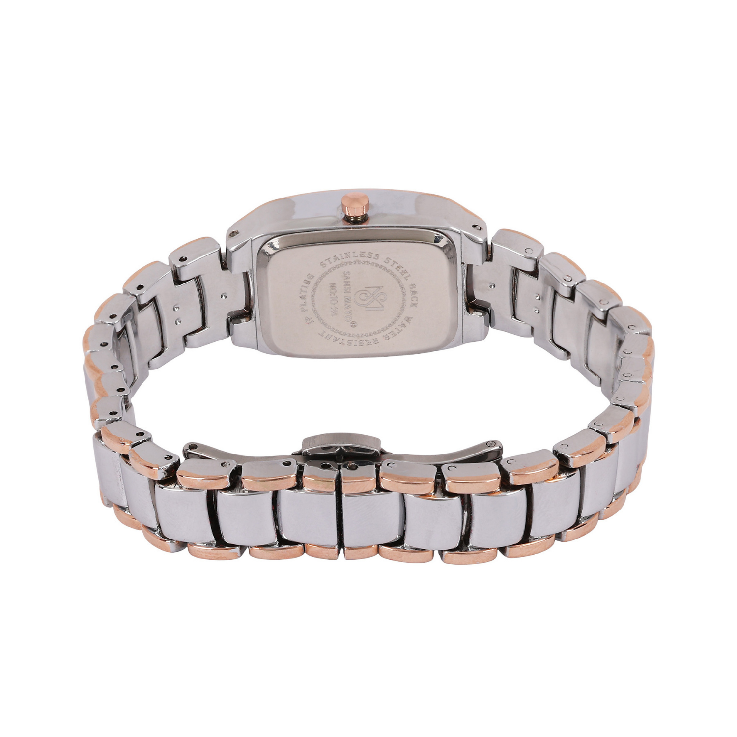 Sansimayo Women’s White Dial Watch with Bangle & Ring Set – Two Tone Silver Gold